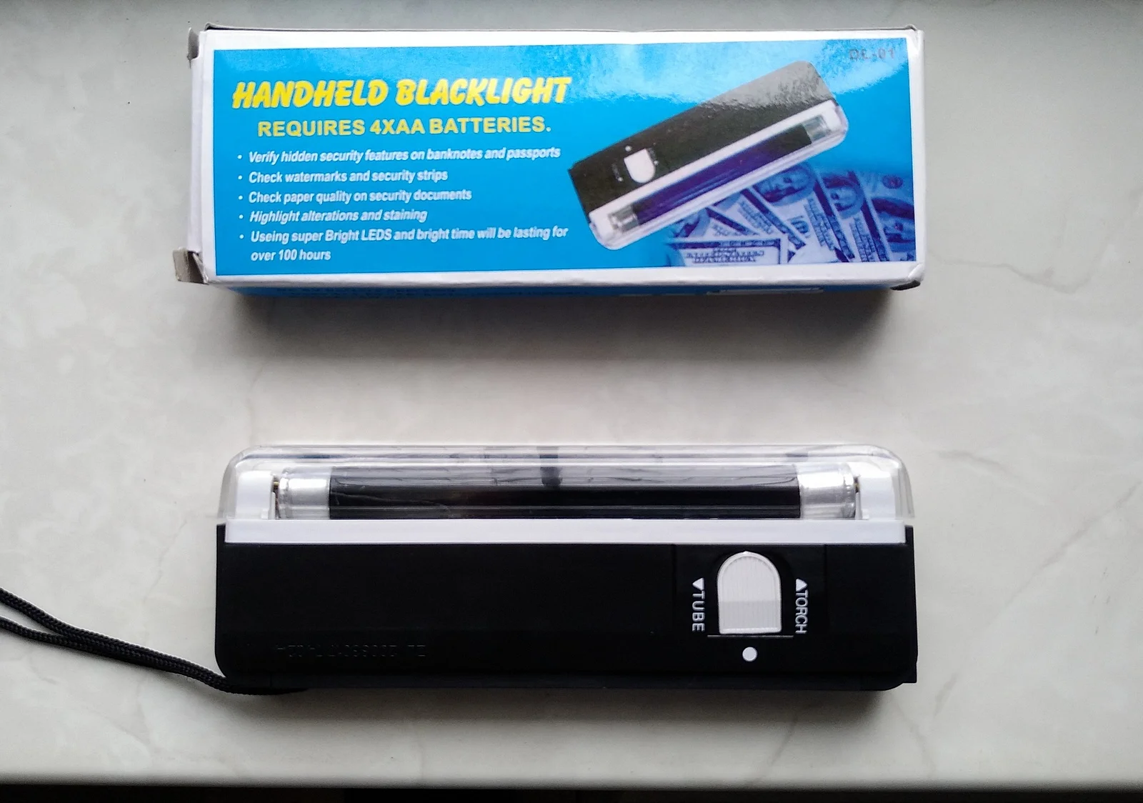 Портативная ультрафиолетовая лампа 2 в 1, мигающий фонарь, черная лампа, УФ-лампа, трубка, ручной детектор денег на батарейках, Прямая поставк...