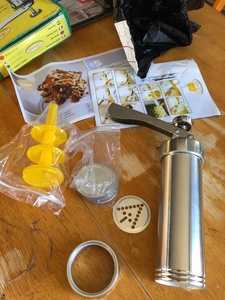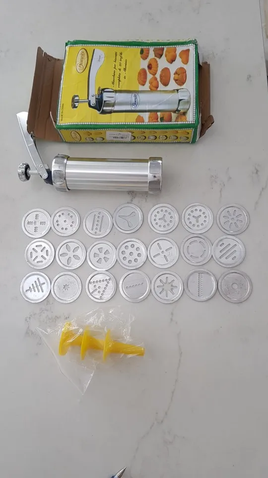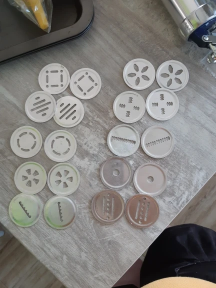 Настроение испорчено! Диски меньше по диаметру примерно на 2 мм, и в результате тесто лезет из щелей, а через 5-6 доз и сама фигурная насадка наполовину вываливается...