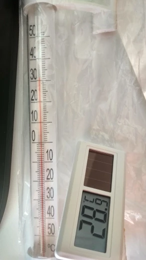 Купил два термометра. Работают хорошо, но у них есть разница в 0.5 градуса. Насчет солнечной батареи не понятно, т.к. что ее держи открытой, что закрываю, разницы никакой.