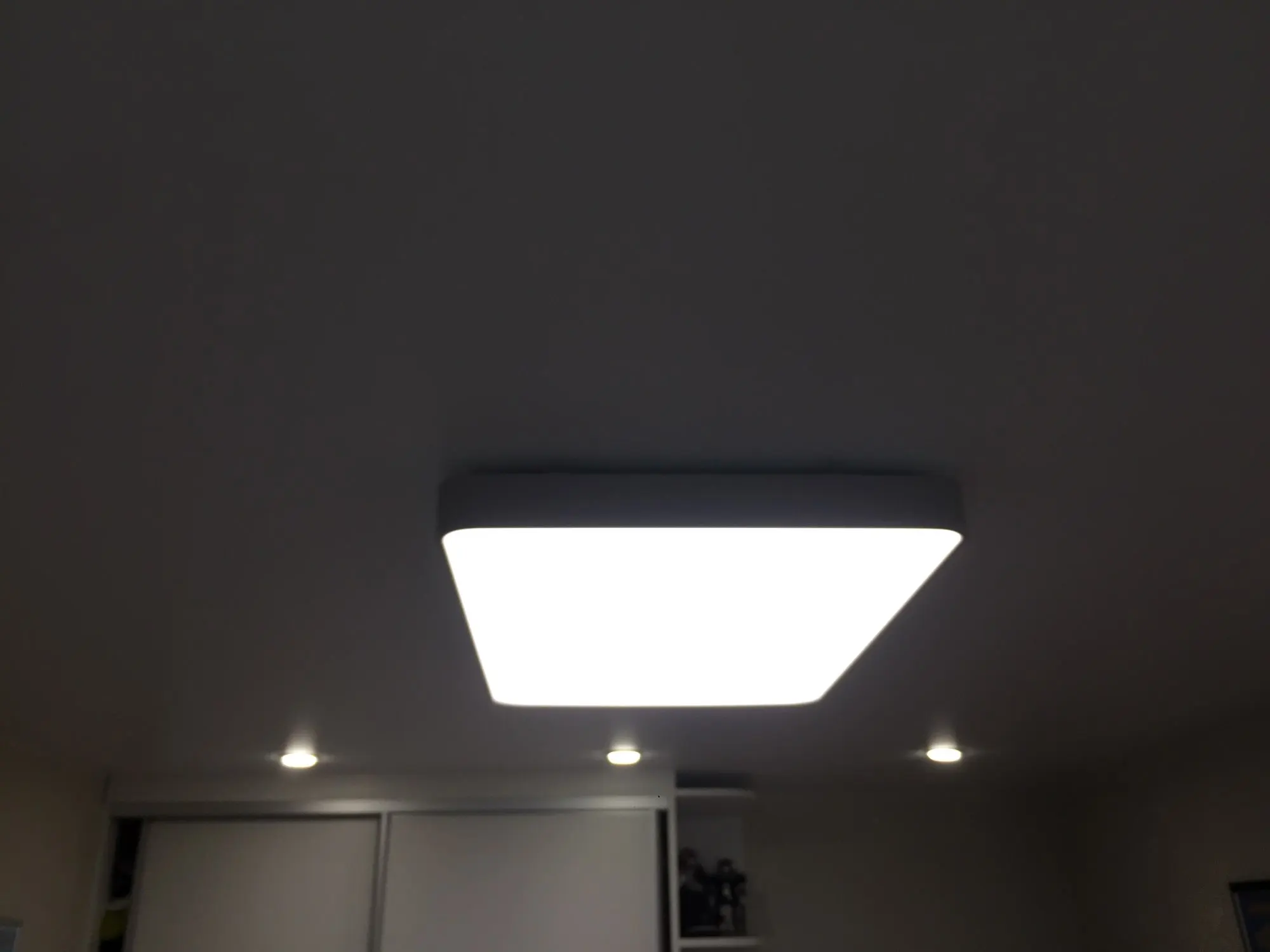 Максимум квадратов на 20 эта люстра, и то углы надо чем-то другим подсвечивать. Брал такие же на 50Вт и 32Вт - вообще не светят, в прихожую разве что Смоделировал в Dialux - достаточно яркое освещение будет только под самим светильником. От версии 32Вт - и 200lux не получите, даже прямо под ним. Свет приятный, выглядит внушительно.
