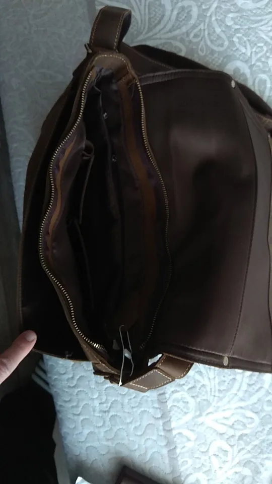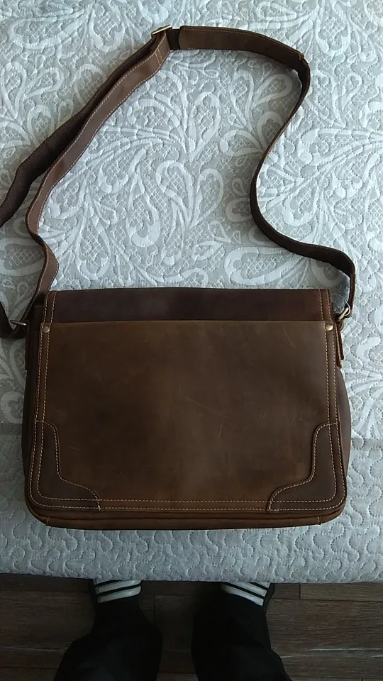 Сумка очень понравилась: функциональная, много карманов, формат А4 свободно помещается, цвет "кофе", вкусно пахнет кожей, качественные швы, негромоздкая. Спасибо продавцу. Доставка 3 недели в СПб.
