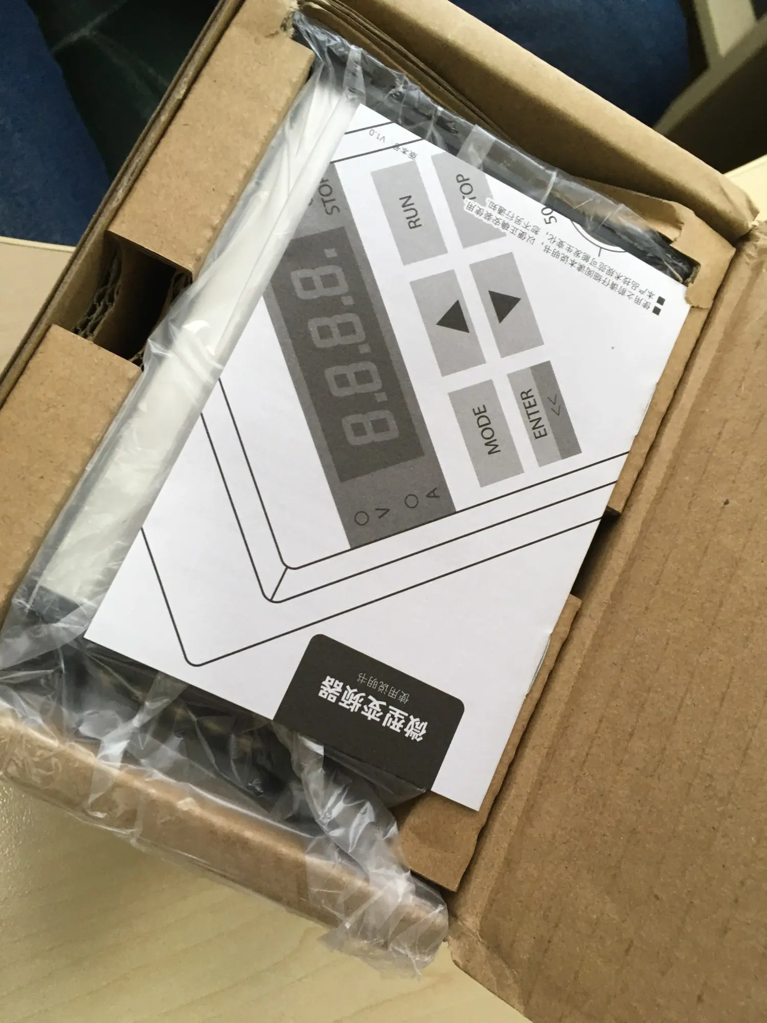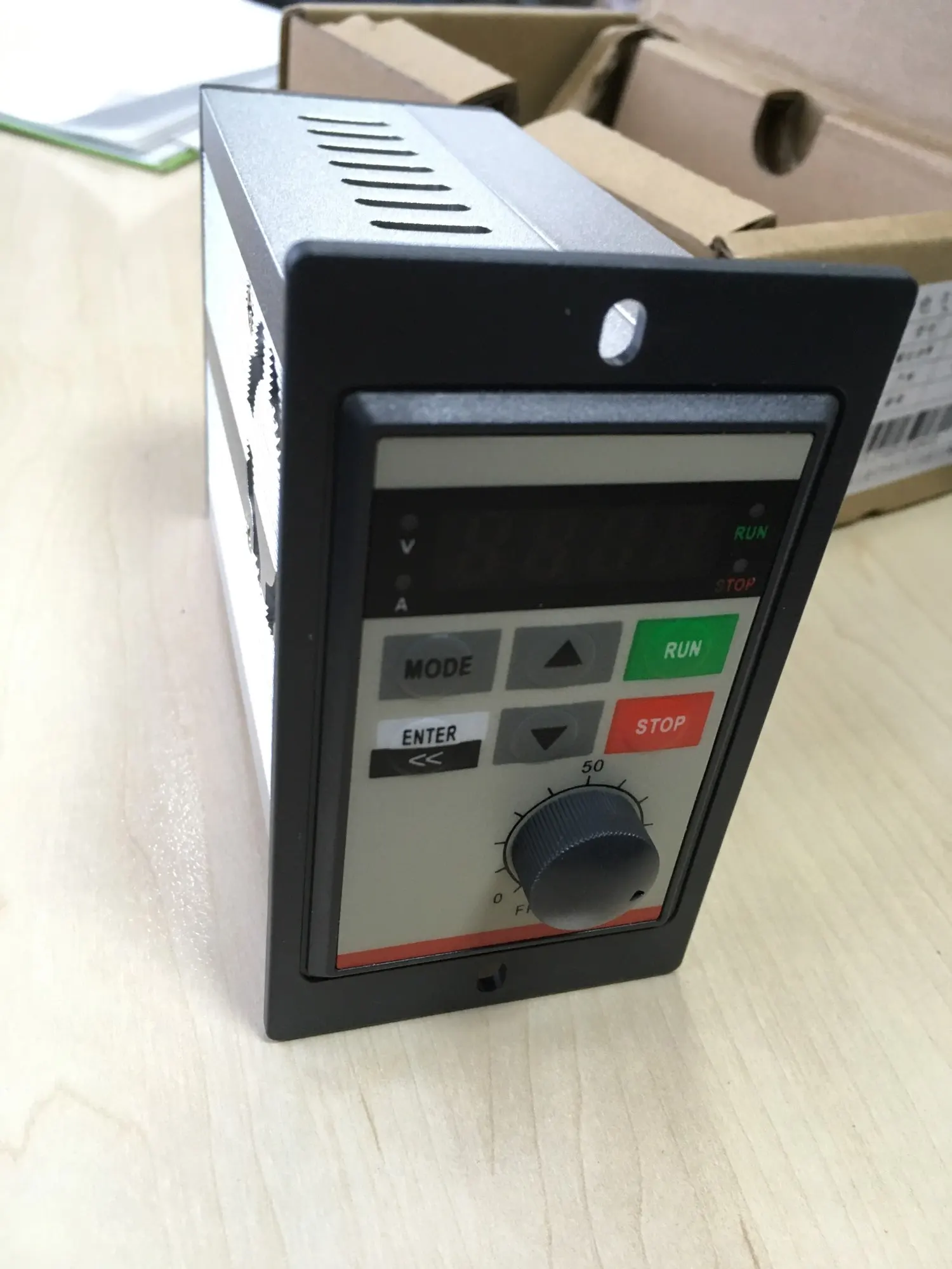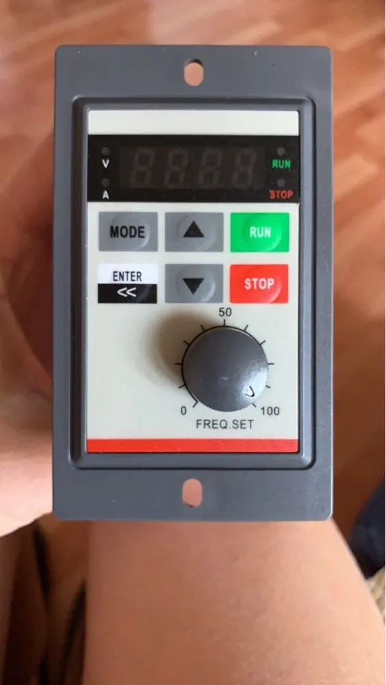 Дошло быстро. поставил на сверлильный станок. Работает. Почему то не работает отключение вентилятора охлаждения. Пытался настроить так, чтобы он включался только при нагреве до 60 градусов. Инструкция польностью на китайском, но продавец отправил после инструкцию на английском. Что нельзя сразу вкладывать на английском? По умолчанию устройство включается от тумблера. Это не очень хорошо, т.к. ресурс тумблера не очень длинный и должна быть обязательная кнопка остановки. Разобрался, как делать, чтобы включалось от нажатия кнопки и выключалась от кнопки "СТОП". Кому надо, делается это так: F2-02 = 3; F2-07 = 2. Для запуска и работы контакт DI03 должен быть замкнут (Это и есть кнопка СТОП). Для запуска нужно временно перемкнуть DI1 или DI2. Для остановки - временно разомкнуть DI3