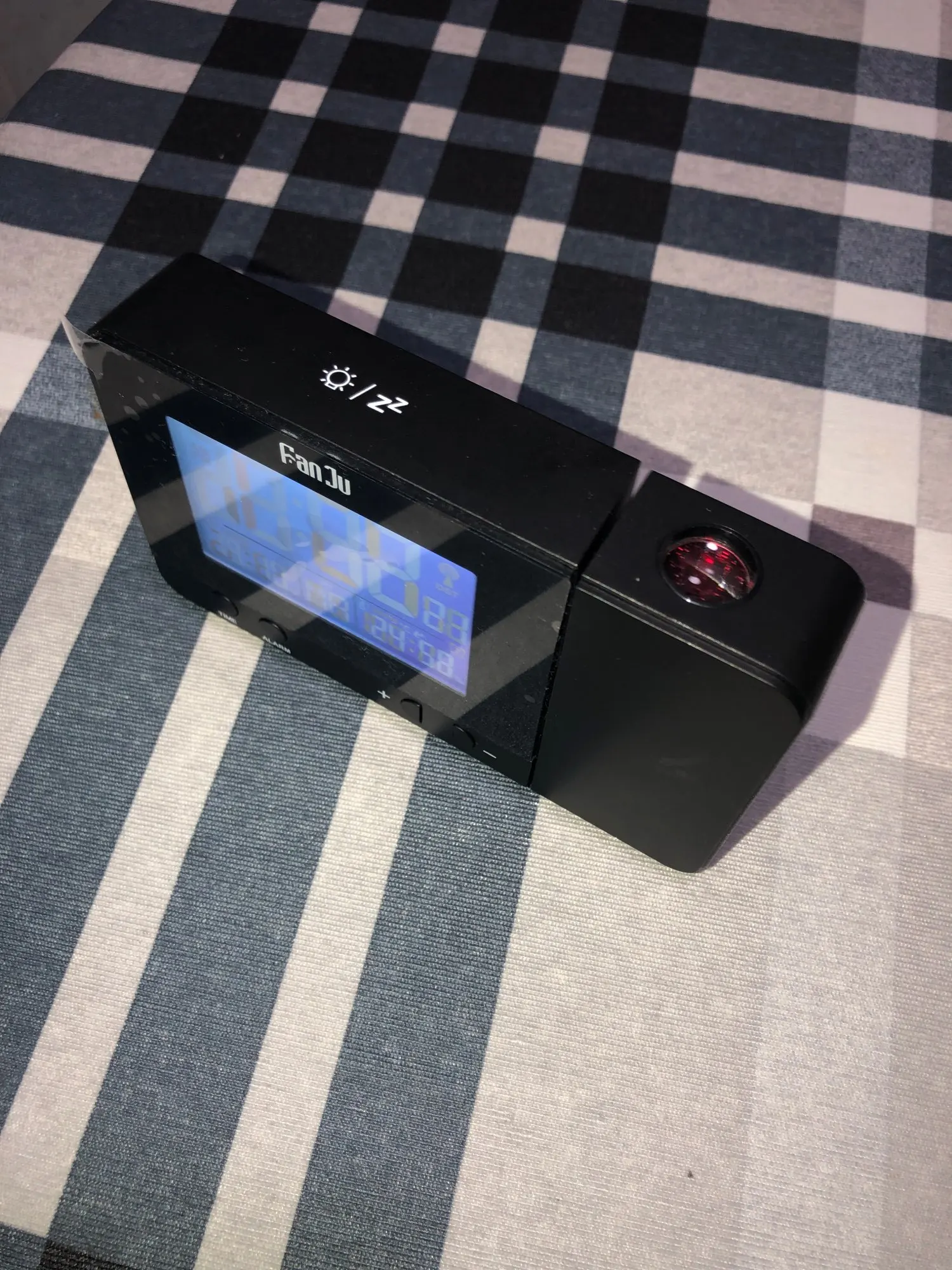 Отличный будильник, работает и без батареек от зарядки,проекция не отключается. на батарейках проекция 8сек. Инструкция на русском,все понятно. Денег своих стоит