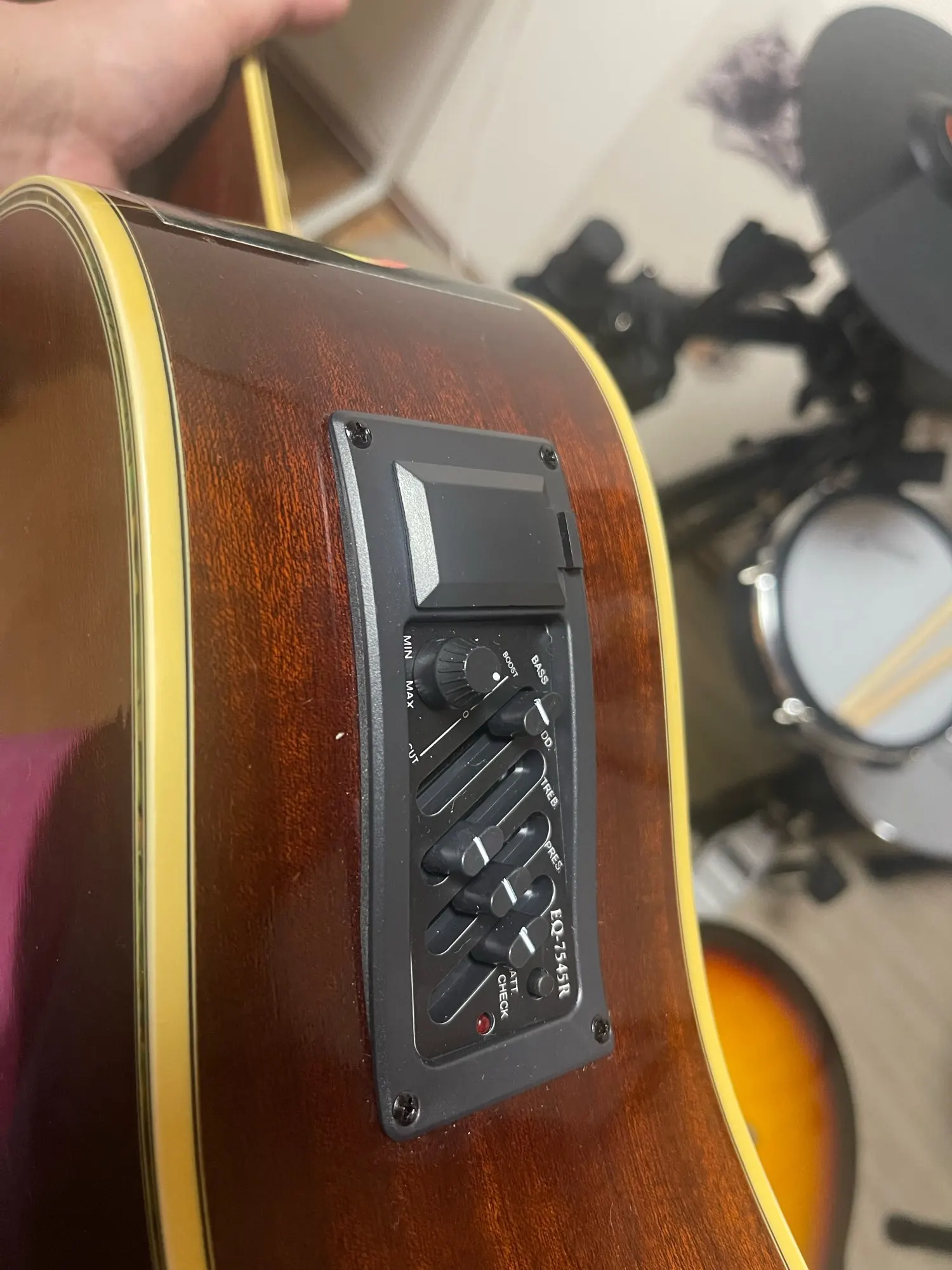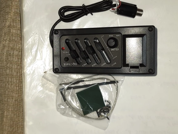 В цілому все нормально. Сам підсилювач працює добре, єдине що йому бракує це вимикача щоб розєднував батарею, батарея постійно живить підсилювач, навіть коли ви ним не користуєтесь. І друге: пєзоелемент має певну товщину, приблизно 3 мм. Щоб поріжок залишився на попередній висоті треба або пиляти поріжок, що не дуже добре, тому що те, що від нього залишиться - його мало. Або фрезою поглиблювати накладку з палісандру, що зробити набагато важче, тому що потрібно це робити делікатно, дотримуючись горизонтальності в основі, інакше пєзоелемент може тріснути.