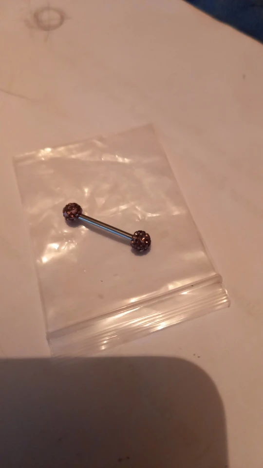 Серёжка красивая. для моего языка размер подошёл идеально. всё блестит!! аккуратно смотрится, сам шарик кроме камней, более молочного цвета. будут ли выпадать камни!? да, Сережка не долговечна. но мне понравился сам шест, который по размеру не мешает мне говорить и не чувствуется во рту. можно поменять шарики, что радует..