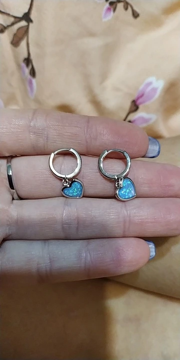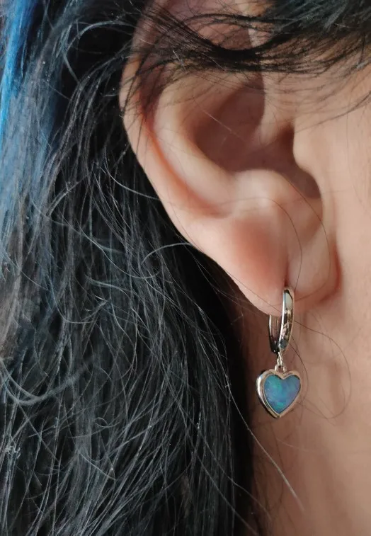 Простые женские синие серьги с камнями-опалами Мода Любовь сердца серьги в виде колец, в винтажном стиле; Серебряные свадебные Цвет свадебн...