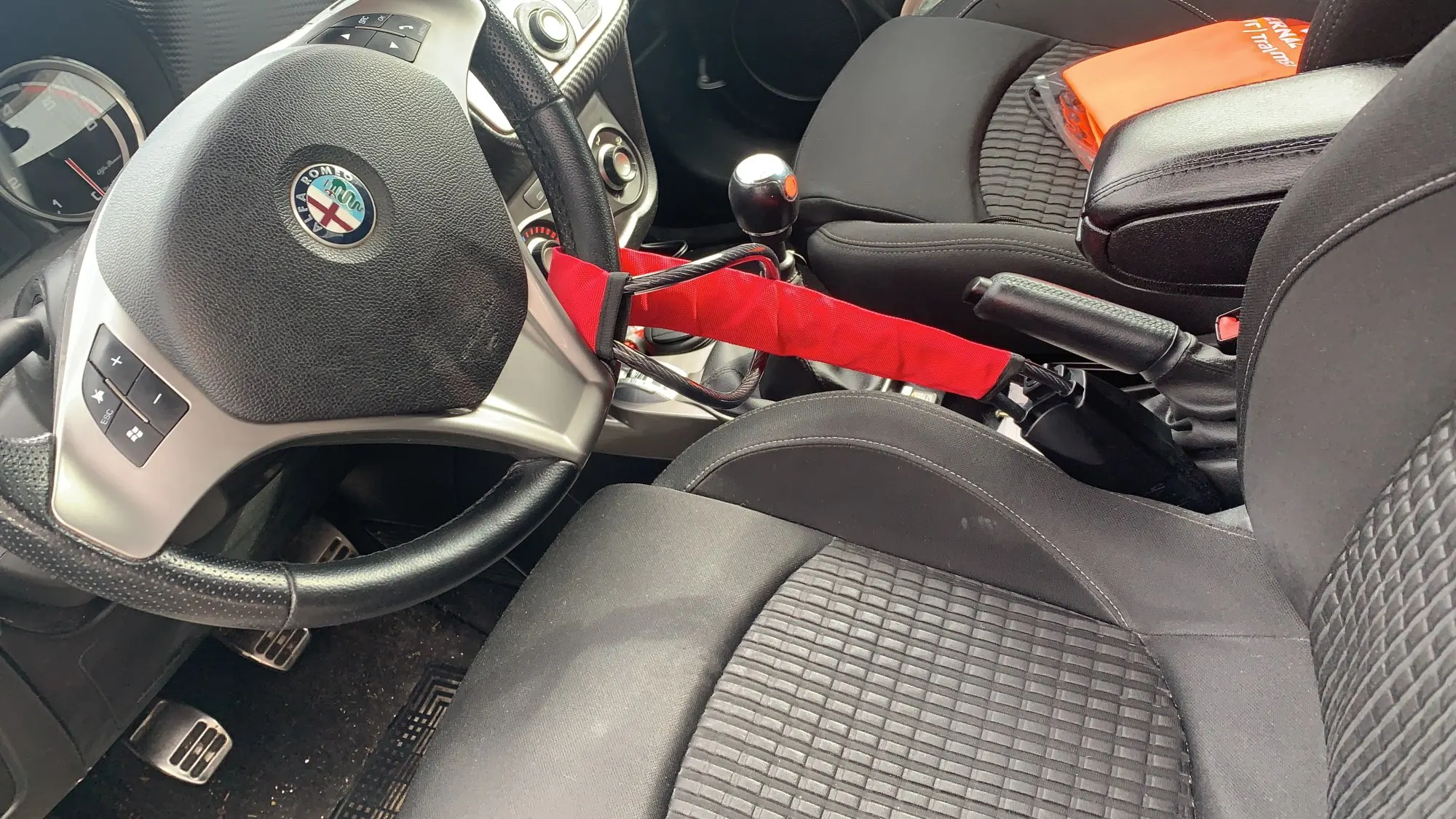 Противоугонный замок на руль с 2 клавишами, черный, красный
