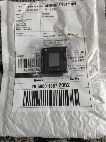 Замовляв 8.11, а Нова пошта доставила 20.11! Процесор працює! Продавця рекомендую!