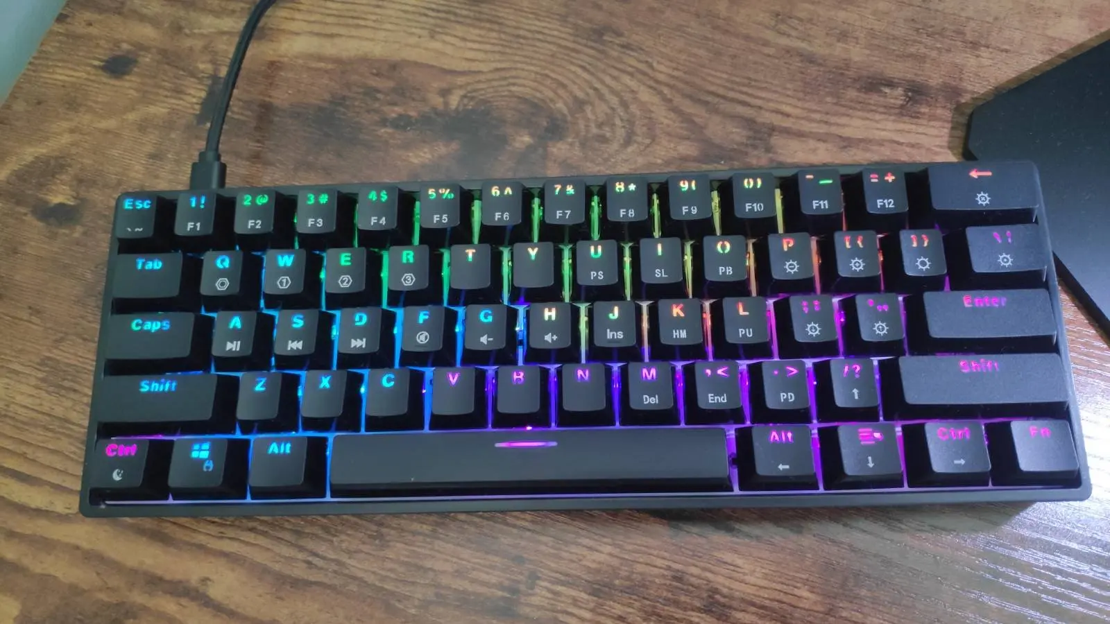 Очень быстрая доставка (в Латвию), получил через пакомат не далеко от дома, прям аж приятно, спасибо продавцу! Сама клавиатура по начальным ощущениям - хорошая, ничего не скрипит, увесистая, стабилизаторы хорошие, кроме крайнего левого под пробелом, но это уже чисто придирчивость за такую цену. Подсветка умеренная, для меня это плюс, единственное из-за строения самих кнопок есть градиент от линз. Отдельно про свитчи - взял коричневые, думал, что будут тактильными, на деле тактильность не чёткая, впрочем, все коричневые этим страдают, до этого была клава с чёрными, они более привычны и тише. Хорошо, что можно со временем заменить свитчи на другие оптические, да и вообще клавиатура располагает к кастомизации, что не может не радовать.