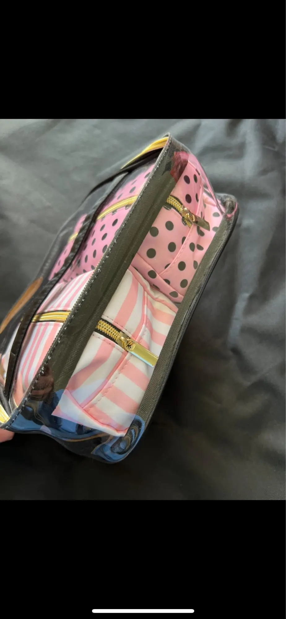 Доставка до Бельгии 2 недели, с продавцом не общалась, отправил довольно быстро. Удобная косметичка, качество хорошее, только запах сильный, но, думаю, со временем выветрится. Швы, строчки, замки - все отлично.