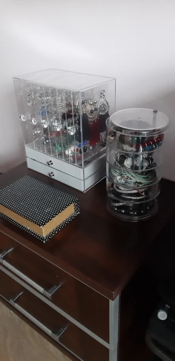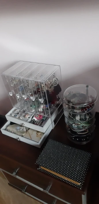 Прозрачная вращающаяся пластиковая шкатулка для украшений, шкатулка для хранения серег, ожерелий, колец, многофункциональная полка для хра...