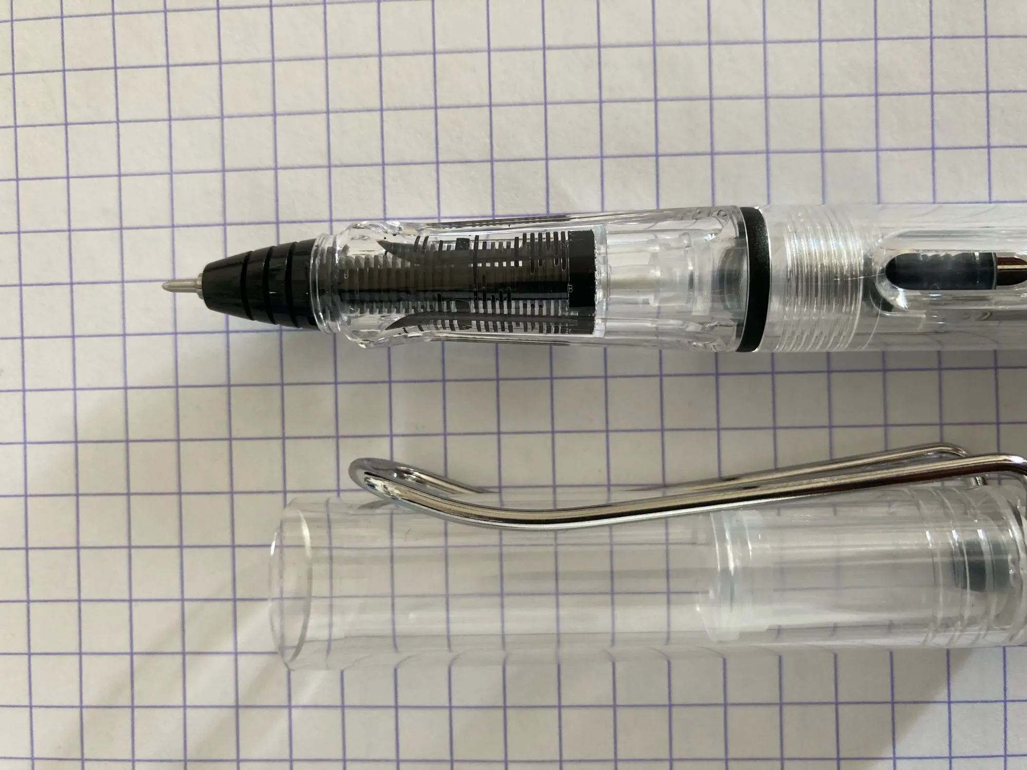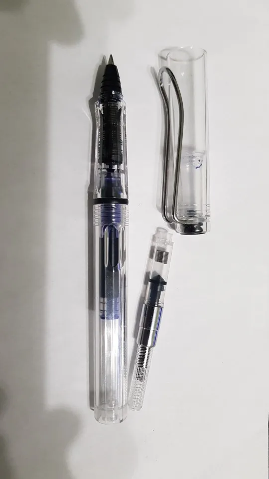 Отлично пишет чернилами для перьевой ручки. В фидере есть жгут, пропитывающийся чернилами, не вполне понятно, как он себя поведёт при переходе на другие чернила и можно ли его заменить, с этим могут возникнуть проблемы.