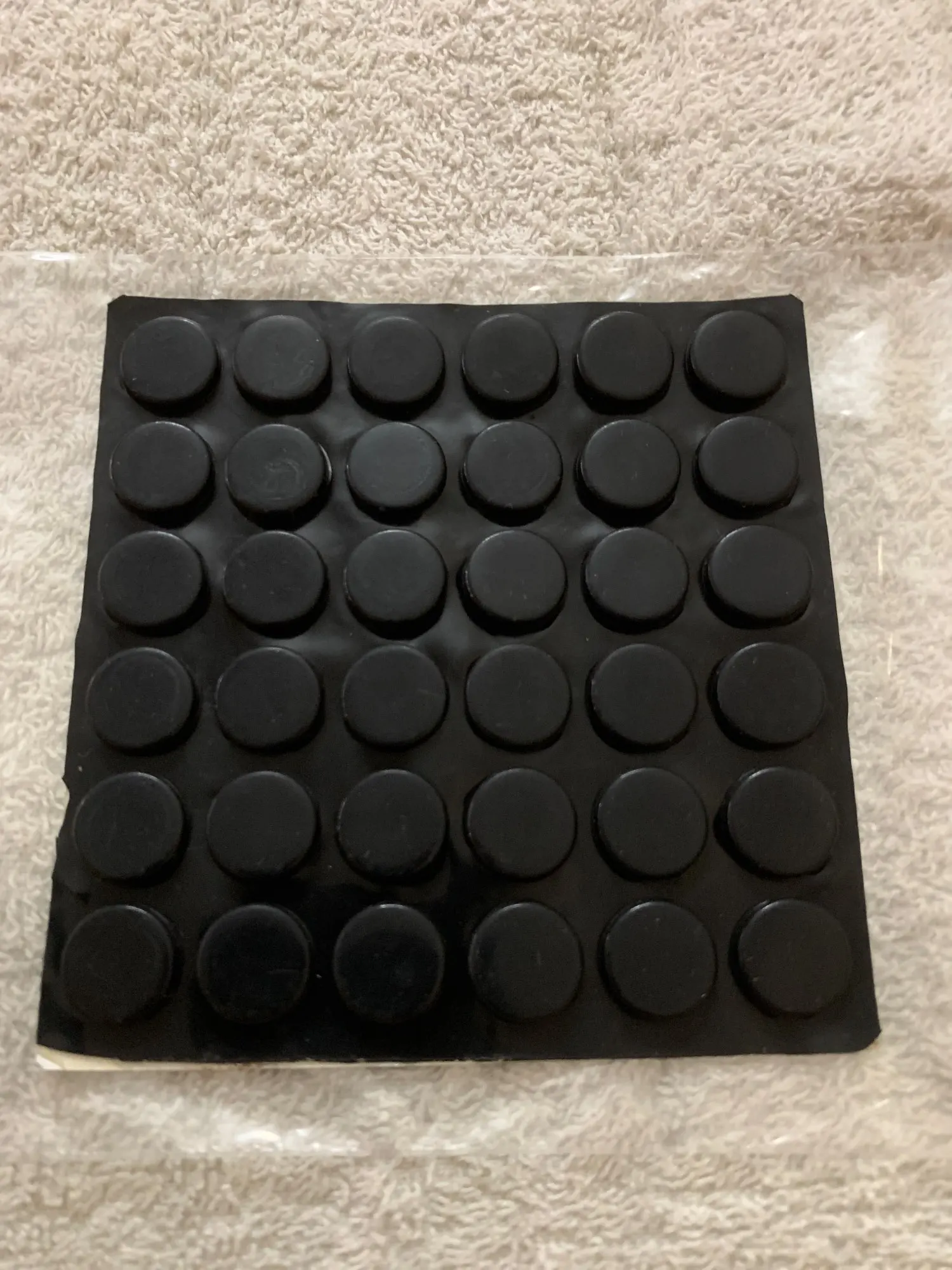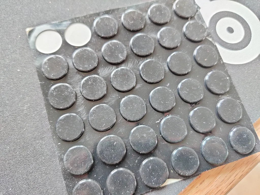 дошли быстро. Качество отличное. Наклеил на алюминиевый корпус самоделки и теперь перестала скользить по всем поверхностям. На ощупь твёрдый но проминаемый немного силикон с глянцевой поверхностью.