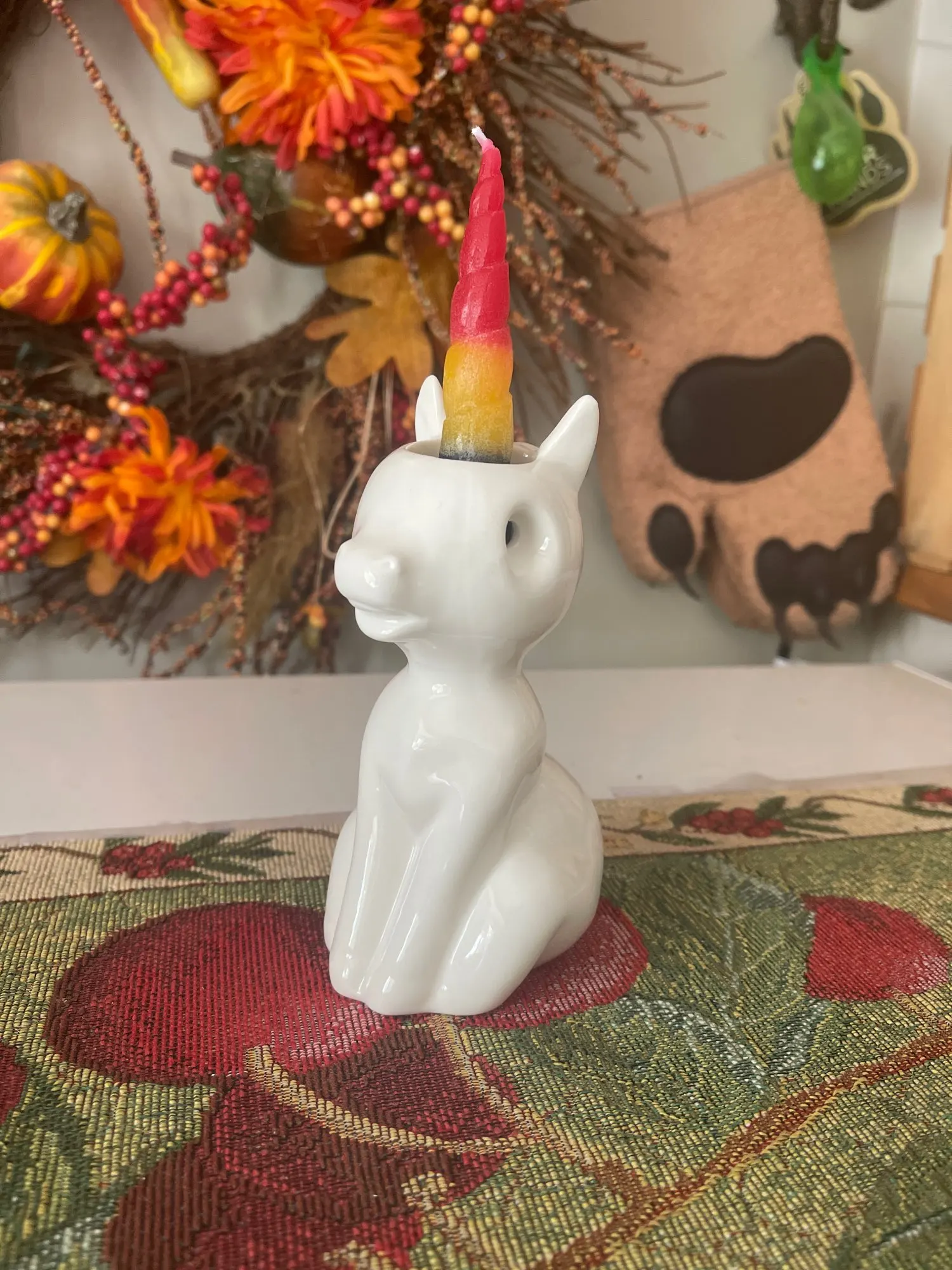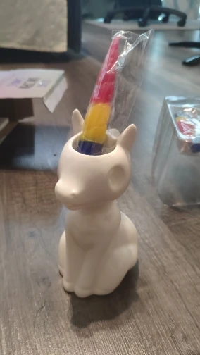 Супер! Посылка пришла в огромной пупырке с воздухом, так что у неё не было шанса повредится по пути) на счёт единорога, что бы он начал плакать, нужно, наверное, спалить всю свечу. Так как в голове резервуар и глазки находятся немного сверху и воску до них добираться долго. Но все же топовая свеча!)