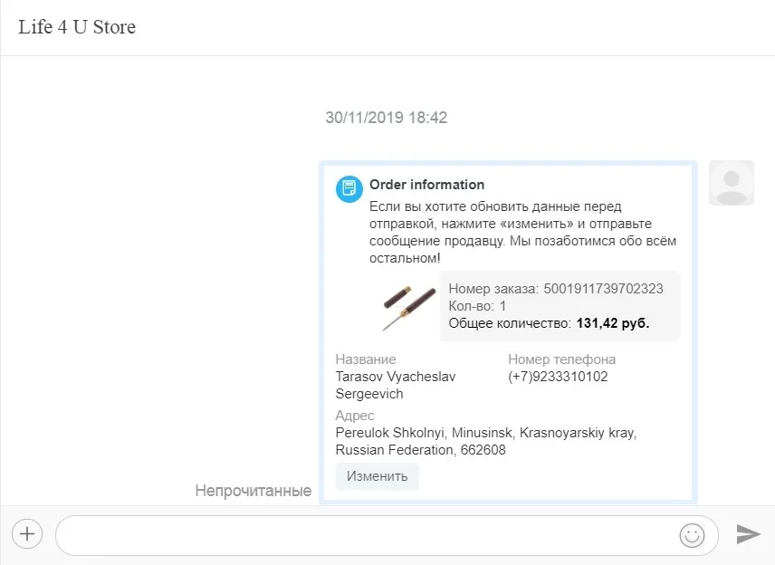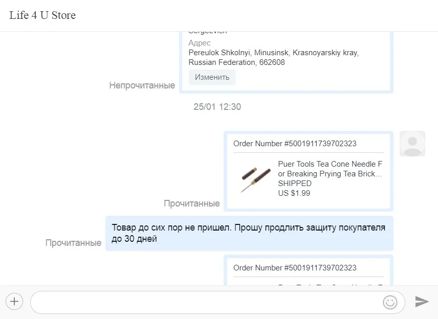 Никогда не покупайте у данного продавца. Заказал товар 30.11.2019 сейчас 08.02.2020 товар так и не пришел. За это время неоднократно пытался связаться с продавцом, просил его продлить защиту покупателя так как товар не пришел, продавец читал мои сообщения и не отвечал на них. После того как я открыл спор продавец ответил, написал что разочарован что я открыл спор. Затем продавец скинул мне номер трека и написал, что товар в пути. Однако как видно на фото с 02.12.2019 товар так и лежит в сортировочном центре и никто никуда его не отправлял. Спор продавцом был закрыт, деньги мне некто не вернул. Не рекомендую продавца!