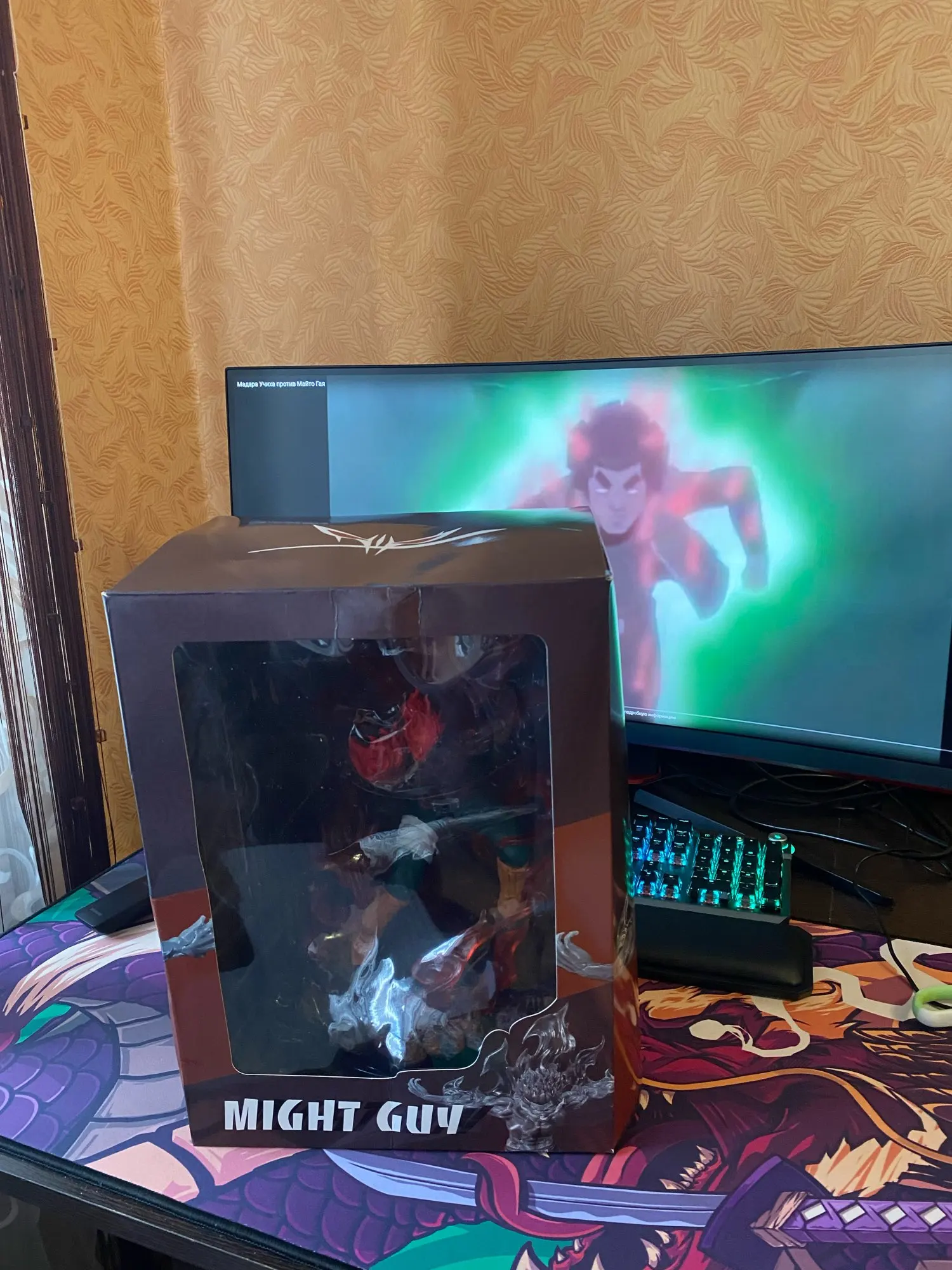 Посылка пришла в ужасном состоянии. Которбка была вся помята, в некоторых местах порвана. Сам же Гай находился в состоянии "после сражения с Мадарой". Пришлось клеить, иначе не держалось. Но в целом фигурка хорошая, мне понравилось. Фанатам советую.
