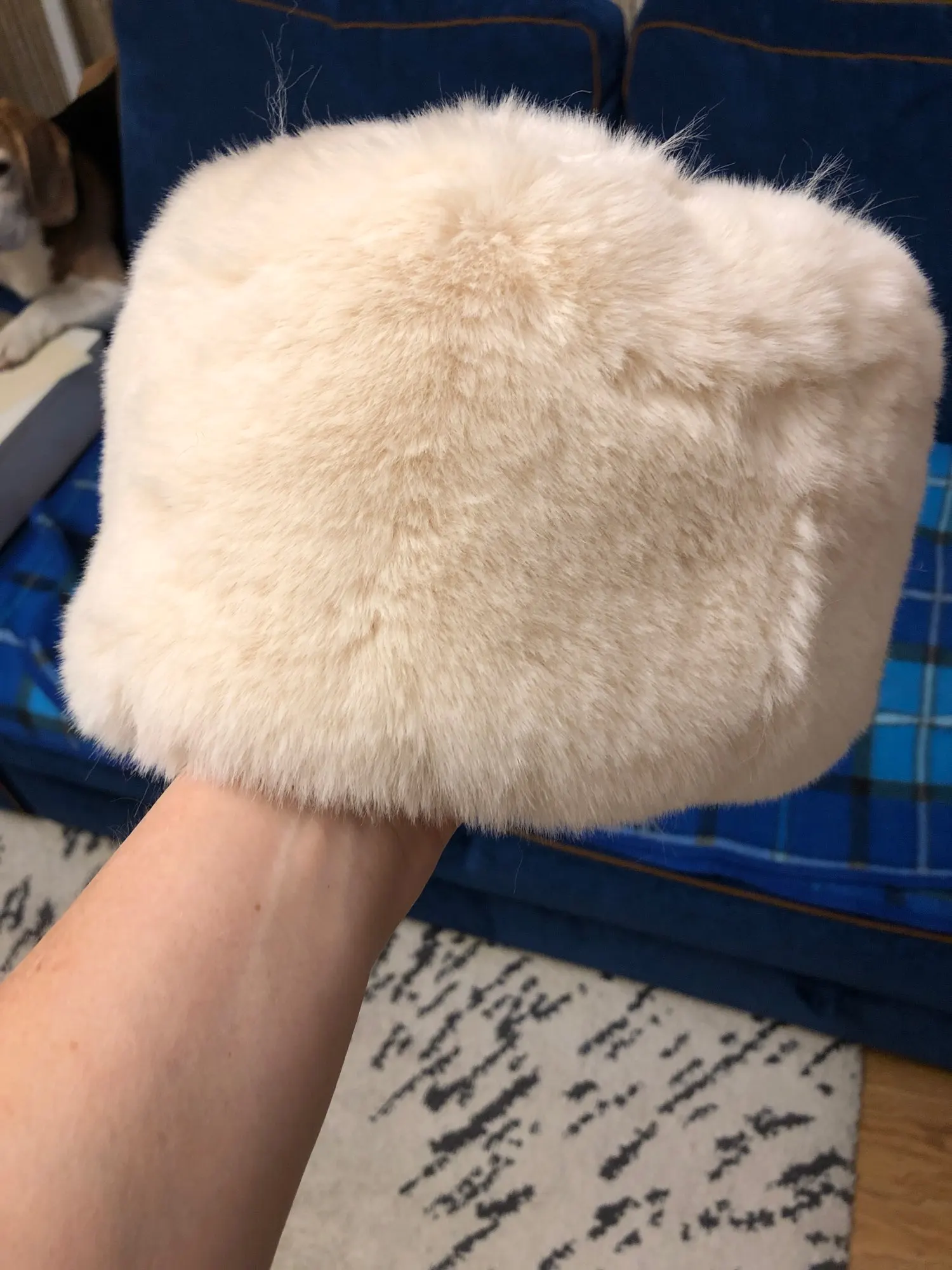 Шапка не на крупную голову. Будет стоять, как папаха. Имейте ввиду. А на маленькую, наверное, будет красиво. Сорри за лицо-дебильцо на фотке, мне просто было очень смешно от своего вида.