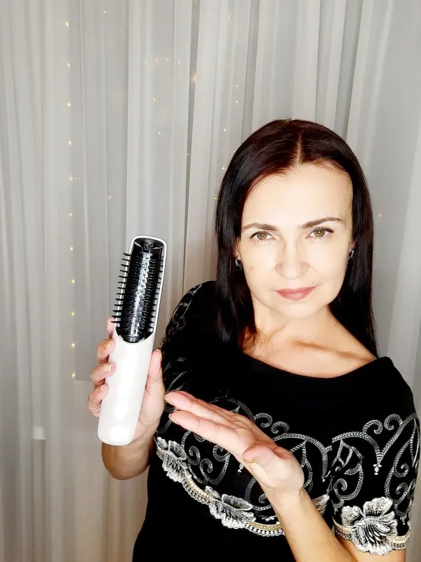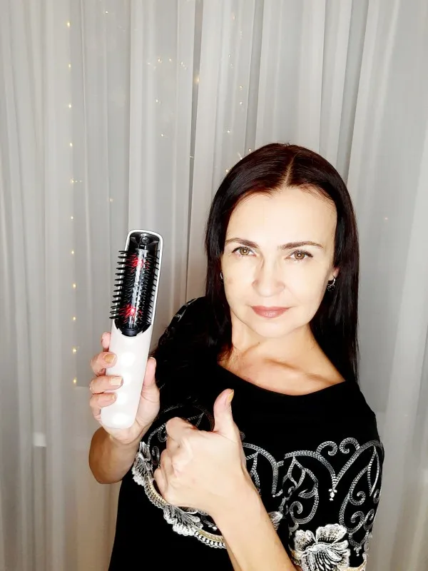 Ускорение роста волос с лазерной расчёской! Привет всем! Сегодня поделюсь с Вами своей покупкой - вот этой замечательной инфакрасной массажной расчёски для волос. Узнала о ней недавно и сразу заказала. Пришла в фирменной коробочке. Выполнена расчёска из пластика с перламутровым оттенком. Расчёска имеет два режима, красный свет проникает в клетки глубоких слоёв кожи головы, тем самым стимулируетспособность к росту волосяного фолликула. Работает от двух батареек, которые в комплект не входят. Насадка в виде расчёски снимается по желанию. Массаж головы - это очень приятная процедура и эта расчёска сделана специально для домашнего применения. Процедуру рекомендуют проводить 3-4 раза в неделю по 10-15 минут (после мытья волос). В целом, расчёской я осталась довольна, она полностью оправдала мои ожидания. А ещё она удобна в использовании!