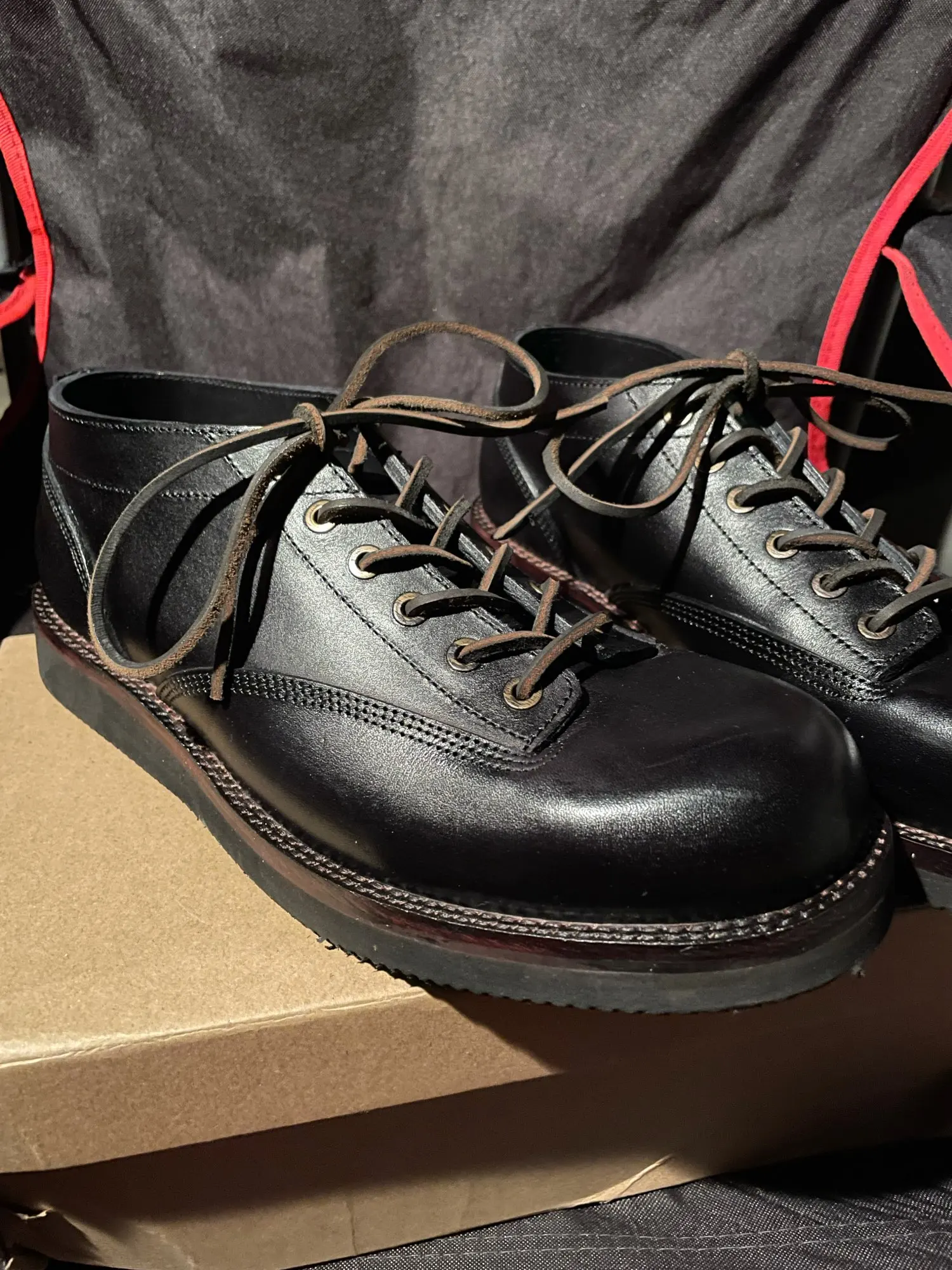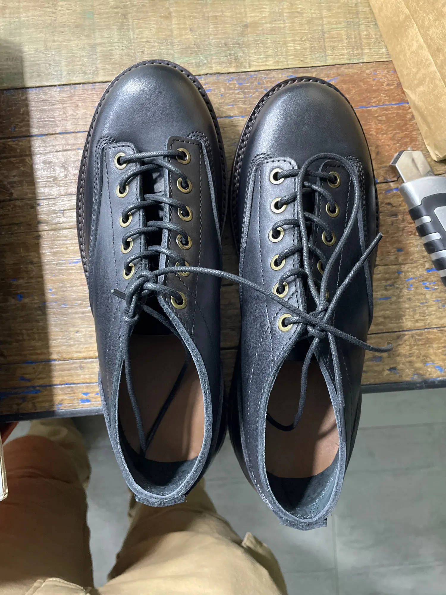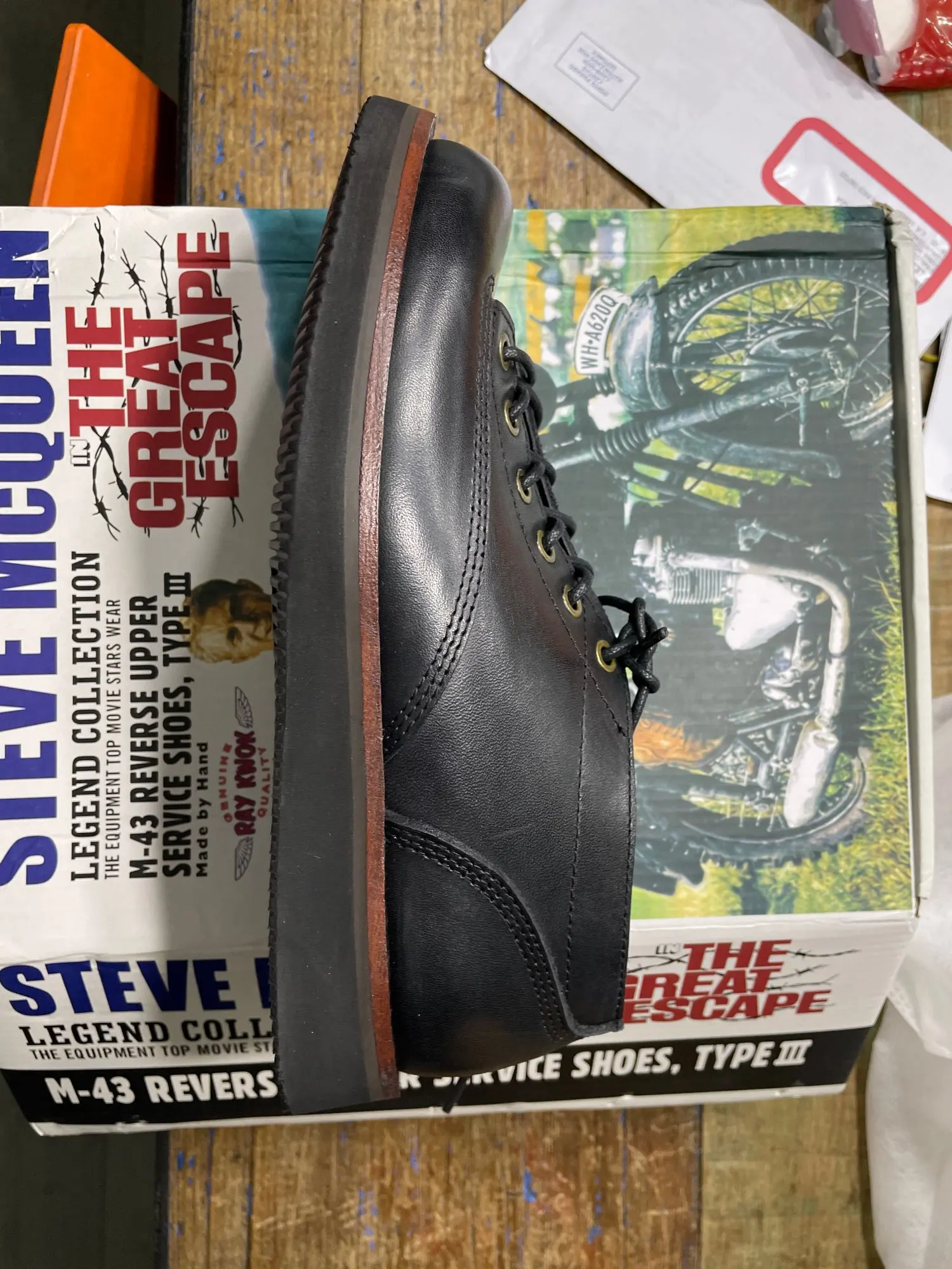 Ботинки шли около месяца, качество отличное, кожа натуральная, заказывал 9,5 оказались велики, стелька по факту около 28,5см. Важно знать, ботинки из тонкой и нежной кожи, а не из дубовой и толстой. Продавец положил подарок. Единственный минус пока, который могу выдать обуви, это запах(клея/краски?), сначала я чувствую его, потом вижу ботинки:))) пока выветриваются на балконе, запах очень сильный, похоже сделали и отправили. Большое спасибо продавцу, будем носить и смотреть, как они будут вести себя, на вид качество топ!