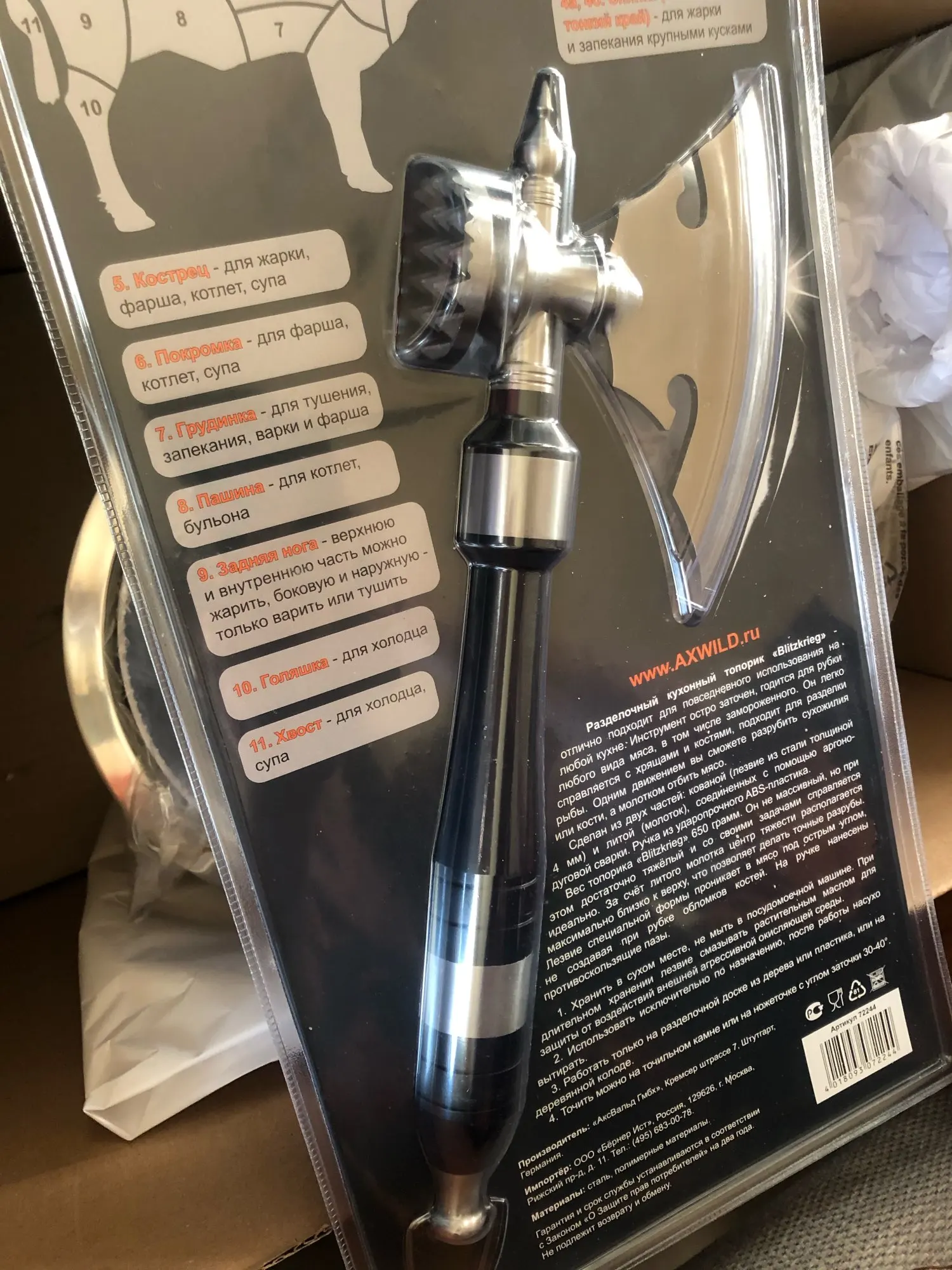 Разделочный кухонный топорик для мяса AxWild БлицКриг.