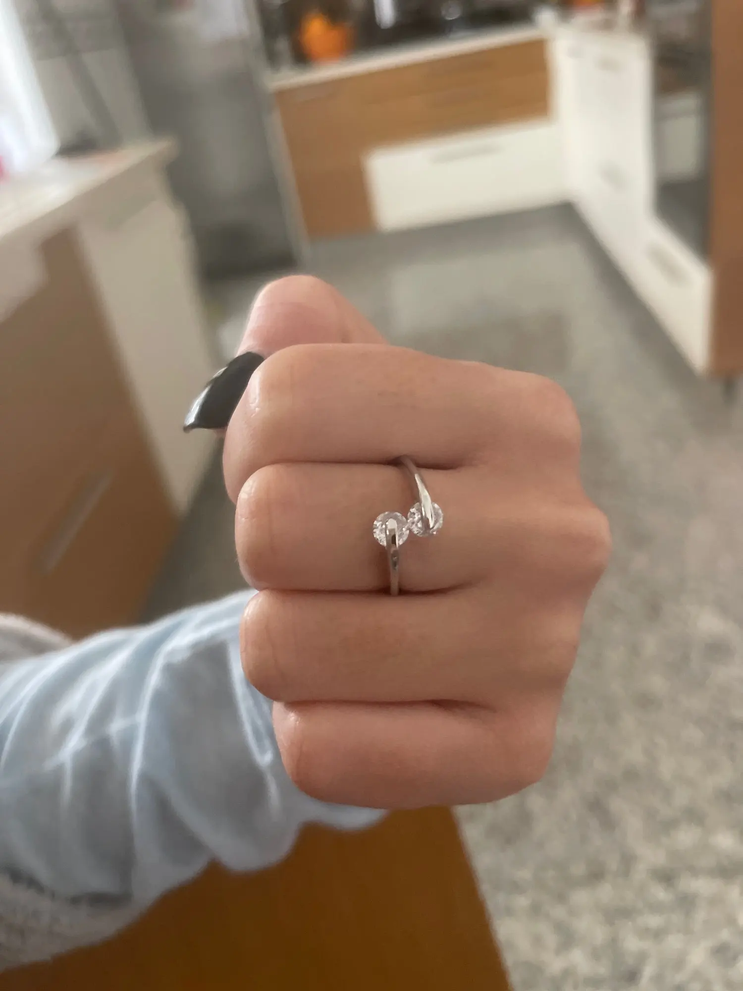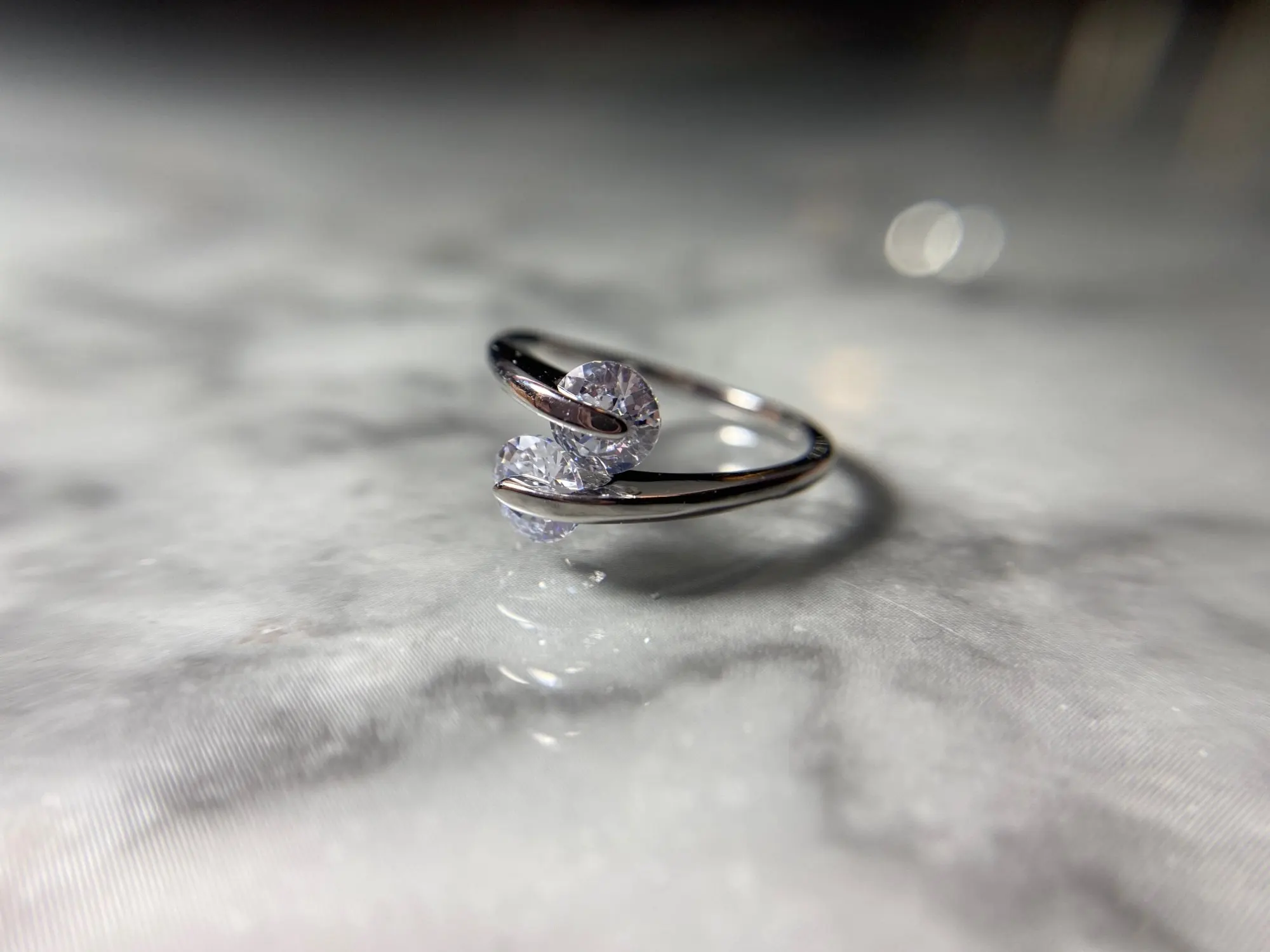 Очень красивое кольцо тоненькое изящное и нежное камешки сверкают как бриллианты .