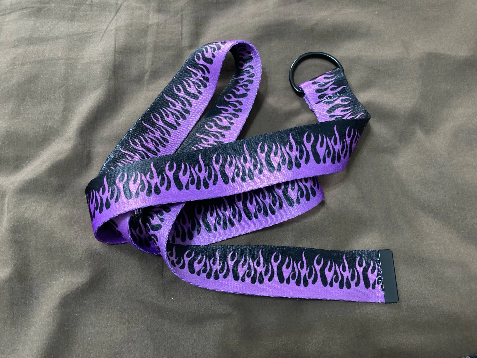 Ремень холщовый в стиле Харадзюку, мужской/женский панк с принтом пламени, с двумя D-образными кольцами, гладкая пряжка, школьный ремень для джинсов и брюк