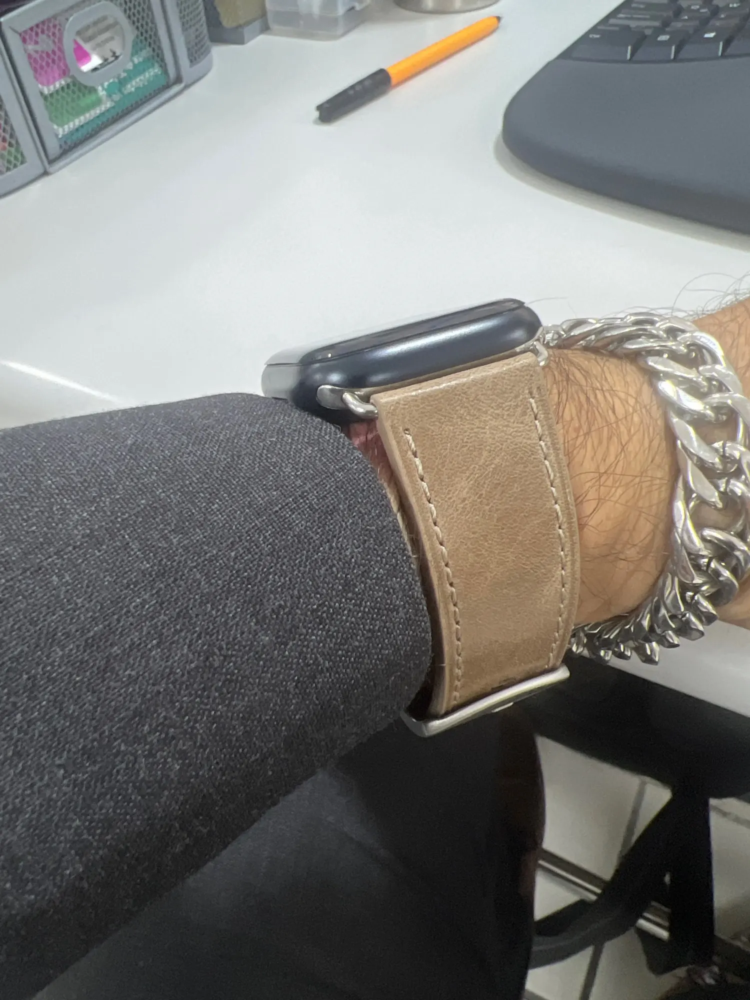 Отличный браслет, кожаный ! Не воняет, смотрится дорого, упакован был отлично, качество достойное, берите не пожалеете. Продавец отправил сразу, по трекеру все отслуживалось. Доставка в постомат компанией сдэк бесплотно, пришло раньше срока на неделю. Вообщем доволен, рекомендую.