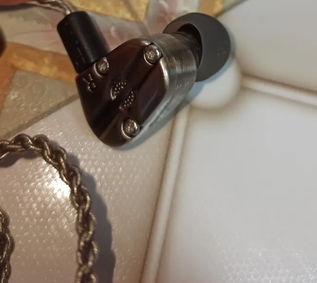 Заказал 29.08, получил 18.09. Комплектную коробочку упаковали в пупырчатый пакет. Замеры корпуса: внешний диаметр звуков ода ~ 5.8 мм, торцевой выступ целых ~ 6.2 мм (важно учитывать при подборе амбушюр). Диаметр звуковода у стандартных амбушюр ~ 3.8 мм, что крайне узко и с большим усилием натягиваются, растягиваясь до предела, что позволяет их очень эластичный сердечник из качественного для среднего сегмента силикон. С пенками такое не пройдет, думаю налезут минимум 4.5 мм, в идеале 5 мм. Провод жидковат - медь в жестковатом силиконе, на морозе и солнце возможно будет усыхать. Холодный металл корпуса на морозе в ушах, может быть чреват неприятными последствиями. Сборка корпусов вполне приемлемая, полировка лака через 3 дня получила незаметные потëртости, видимые только при отражаемом под углом свету - это будет с любой полированной вещью. Звук: из коробки ВСЧ и ВЧ очень чистые, после динамических удивительно и приятно слышать такой прозрачный и детализированный звук. О НЧ ниже:
