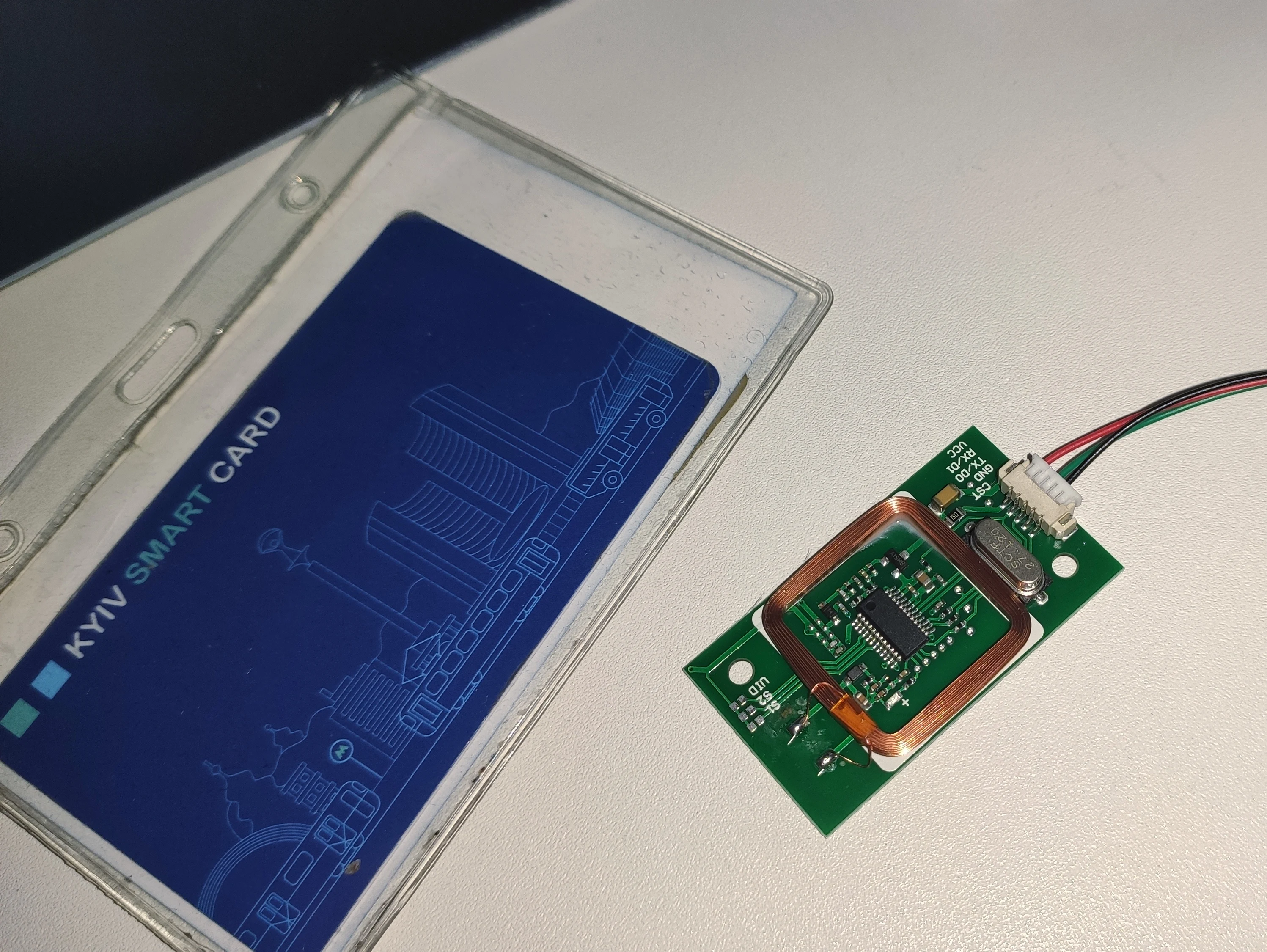 Считывает и отправляет по uart ID карт, проверял на emmarine, "тройке", банковских картах. Если пытаться приложить nfc андройда, то каждый раз разный ID, видимо это какая то фича андройда.