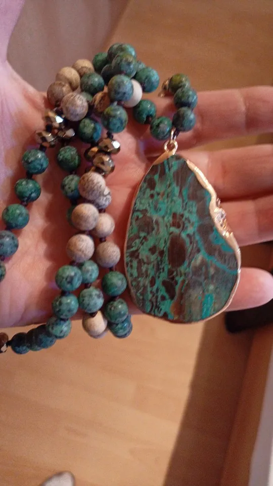 RH, модное богемное гарнитур ювелирных украшений из природного камня с полу Драгоценная Подвеска ожерелья для женщин в богемном стиле ожере...