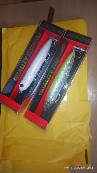 Продавец молодец, воблеры качественные и сделаны хорошо, крючки хорошие. В предыдущем заказе рукожопые сотрудники почты сломали лопасть, помяв упаковку, продавец попросил фото сломанной лопасти и в новом заказе прислал новый воблер с лопастью.