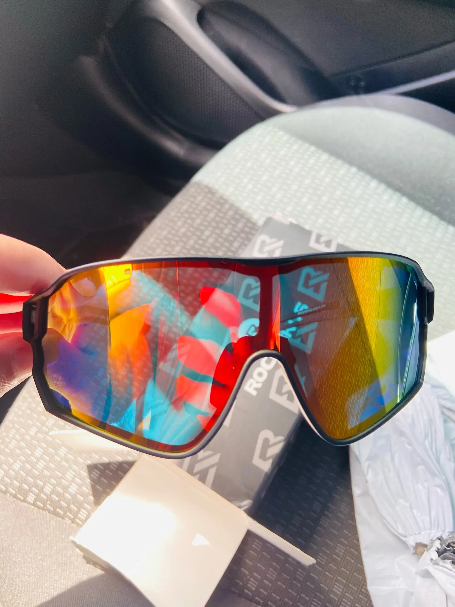 ..Очки такие как и ожидалось...Полностью пластиковые .Есть немного косяк .Правая линза снизу выступает из оправы,но это не критично за эти деньги...