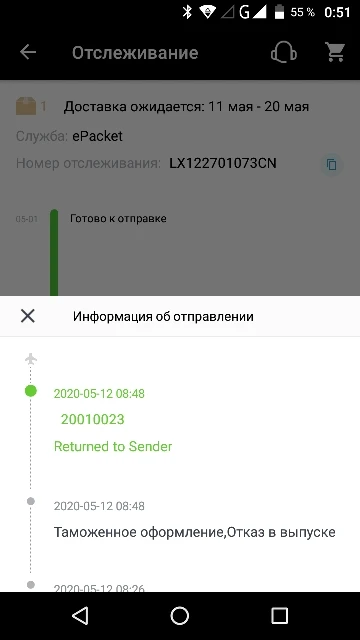 Рогатка не пришла. Отказ в выпуске на таможне. Деньги вернули.
