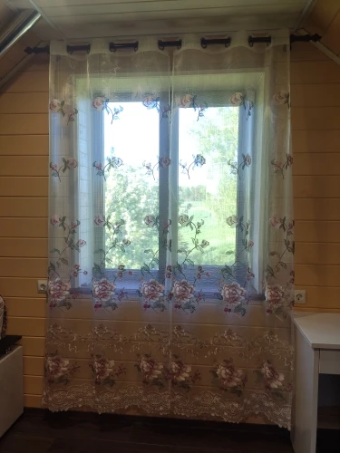 Luxury Beige hollow embroidery flowers curtains