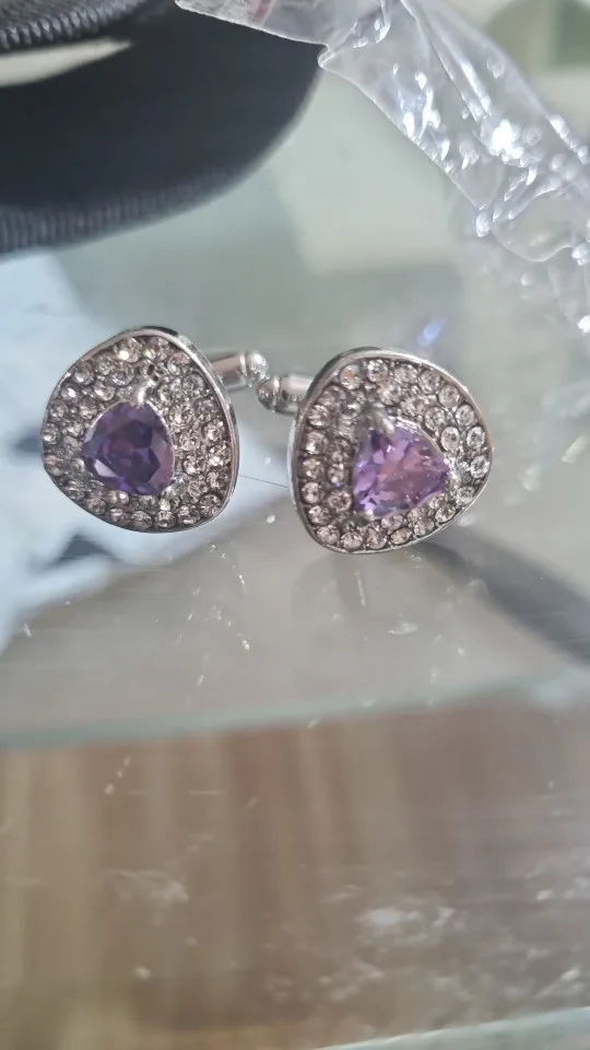 Роскошные фиолетовые белые запонки с черными стразами для женщин и мужчин, рубашка высокого качества, французские запонки, повседневные ювелирные изделия, подарки, манжеты на пуговицах