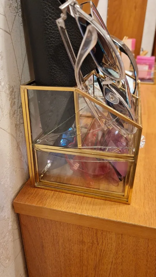 Роскошные Стекло прозрачная Стекло золотистыми металлическими коробка для хранения ювелирных изделий, чехол Косметика, макияж, губная помада держатель Органайзер с выдвижными ящиками