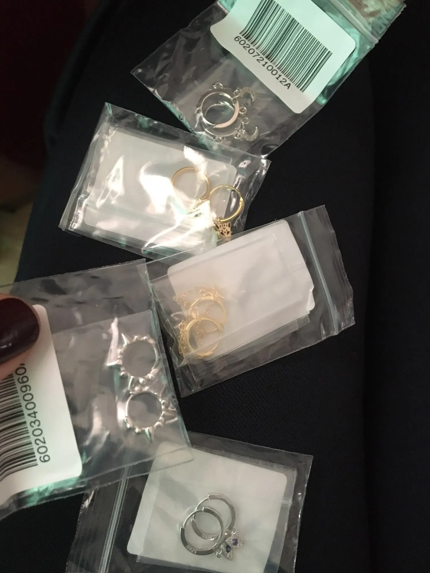 Очень маленькие( детский размер, мочки ушей не влазят, застежки хлипкие. Но, хорошенькие и вроде серебро.