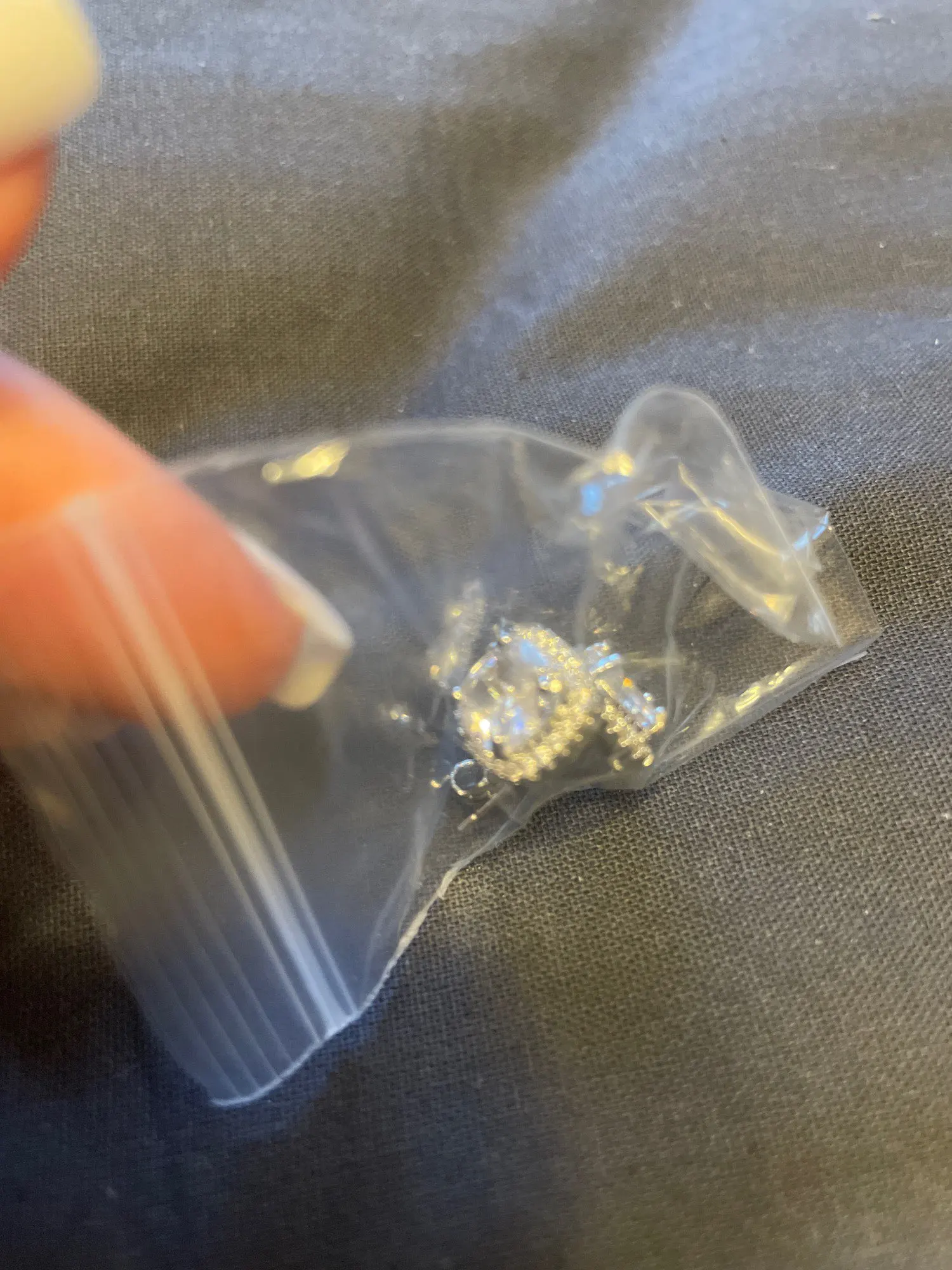 Отличные сережки! Трек не отслеживался до Новосибирска. Фото соответствует. Сначала кажется, что кант из белых камней выступает ярче, бросается в глаза. Но в ушах все уравновешивается, смотрятся хорошо. Средний 'камень' так и играет всеми цветами, как на фото - фиолетовый, зеленый, сиреневый, даже без солнечной погоды.