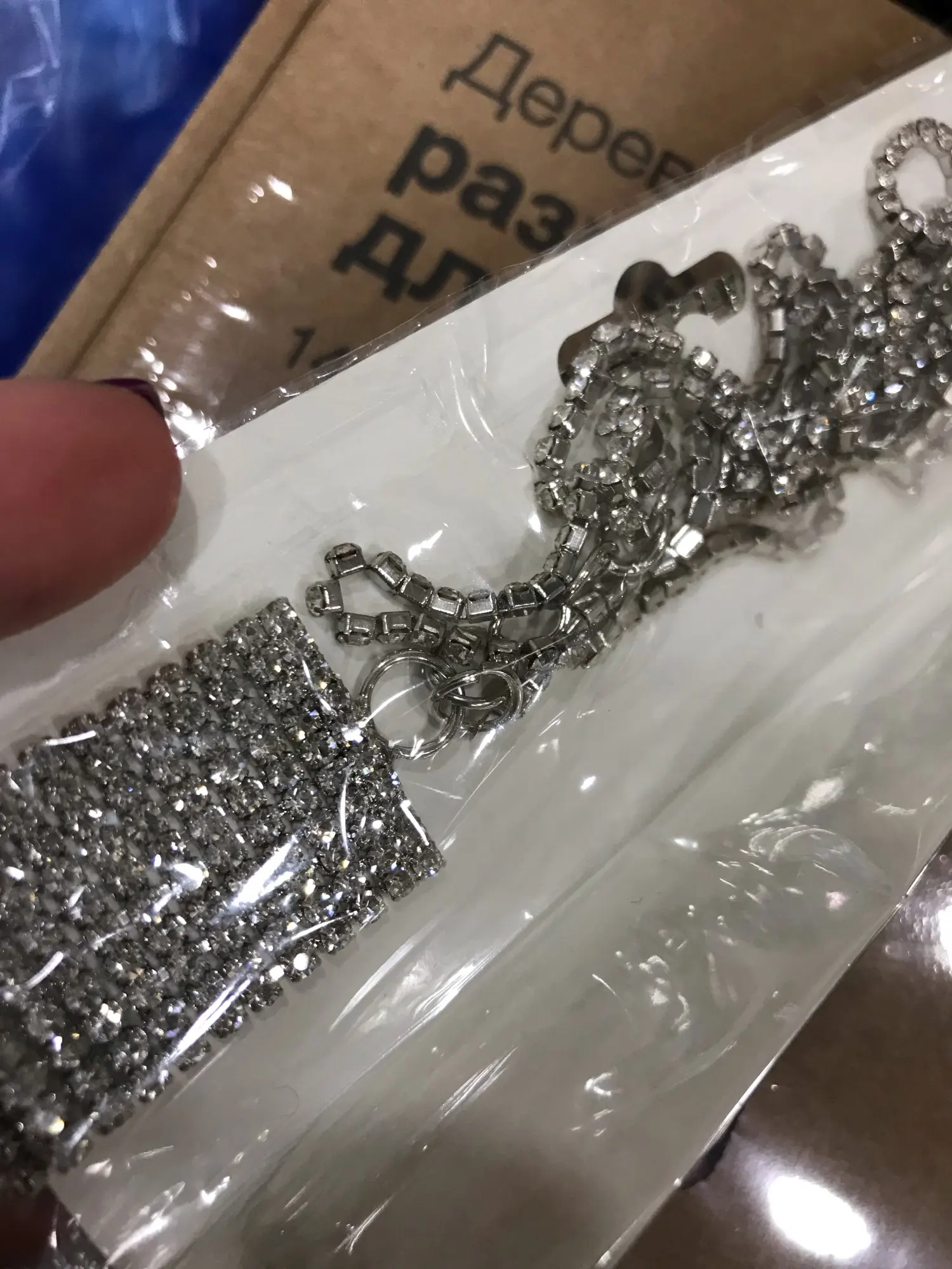 Пришло сломанным. Оторвана одна из лент и это только ювелирно припаивать паяльником. Или отрывать с другой стороны. Упаковано было в обычный пакет. Так что задачи доставки посылки целой, задачи у продавца не было изначально. И собственно оказалось очень коротким по длине. На обычной взрослой шее, доходит только до плечей. А дальше цепочка без запаса на больший объём тела. Как следствие эти палки на конце траться по бокам и доставляют дискомфорт уже через 10 минут. Стоит ли говорит о долгом вечере на едине с бусами, которые занимают все мысли, и об эффективности китайской пыткой каплей. В общем этот размер на детей. И если бы производитель не пожалел длинны изделия, то оно бы смотрелось абсолютно по другому. Хотя бы как на фото)