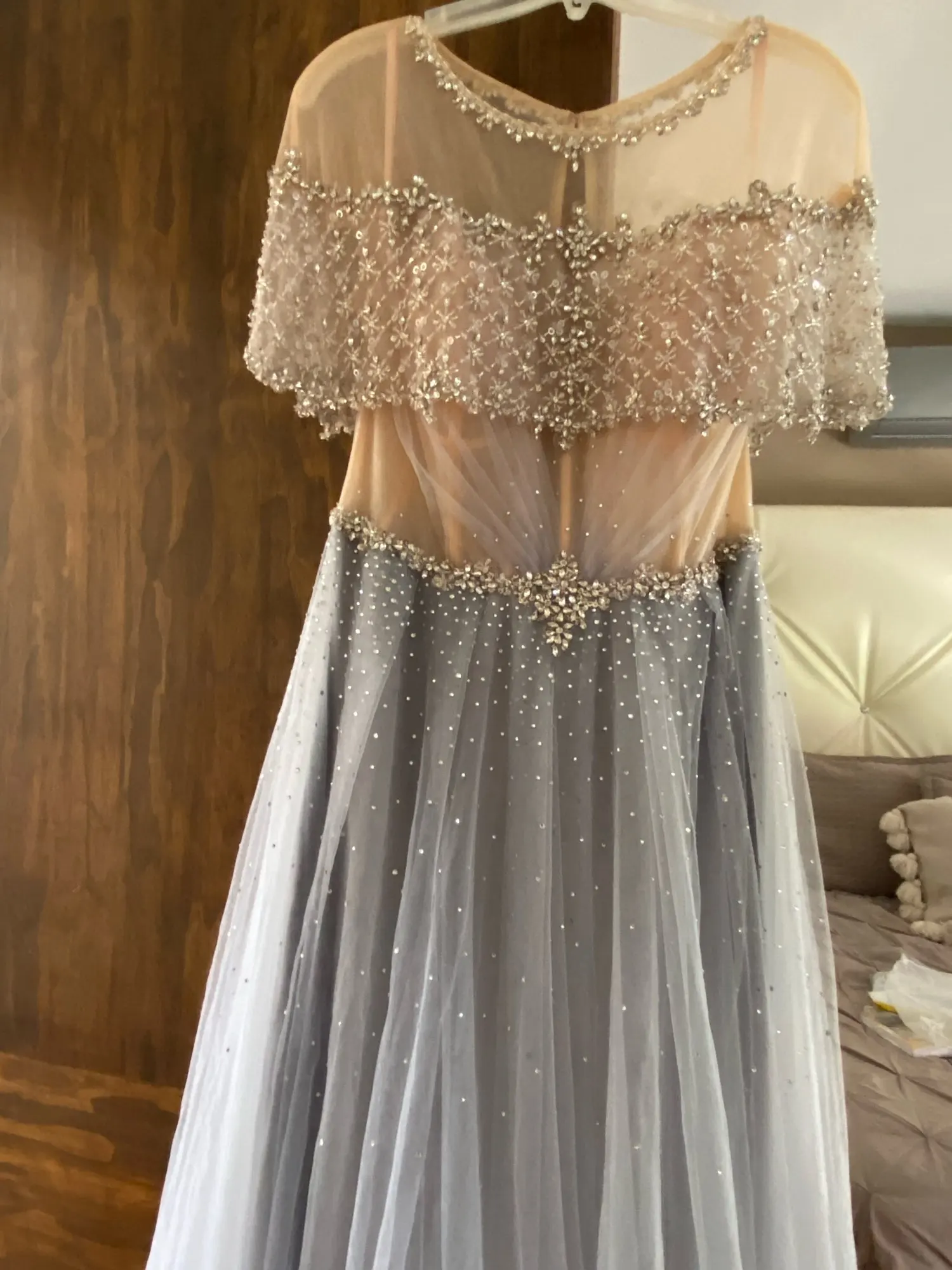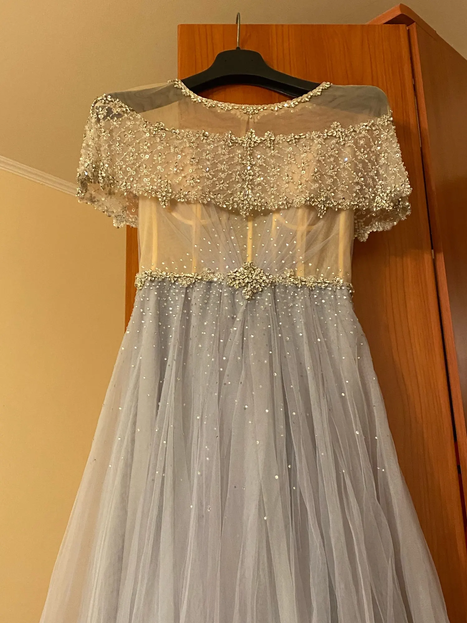Платье шикарное! Но продавец очень плотно упаковал товар, открыть без помощи острого предмета было просто нереально.... в итоге как ни старалась аккуратно, все равно дырка на платье. Обидно до слез