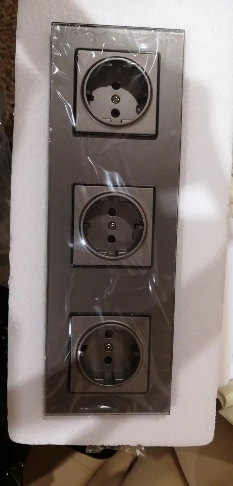 Розетка COSWALL с заземлением, настенная Хрустальная стеклянная панель, 3 клавиши, 16 А, европейский стандарт, белая, черная, серая