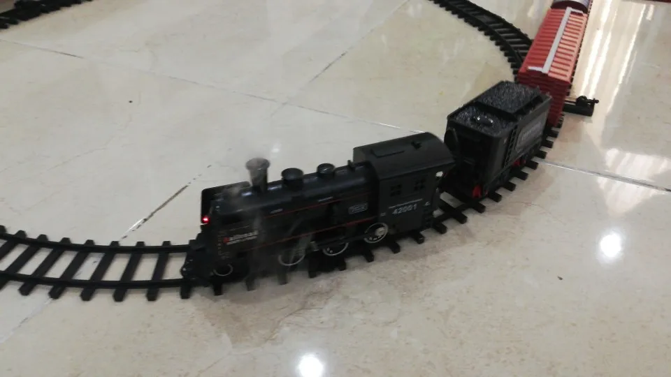 Рождественский поезд, электрическая игрушка с железной дорогой, грузовые и треки, паровой локомотив, модель двигателя, обучающие игрушки для мальчиков, для детей