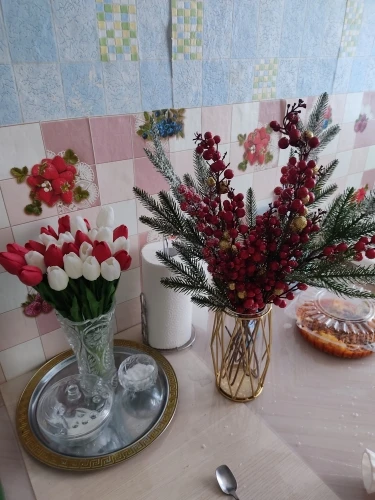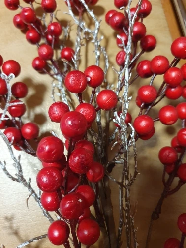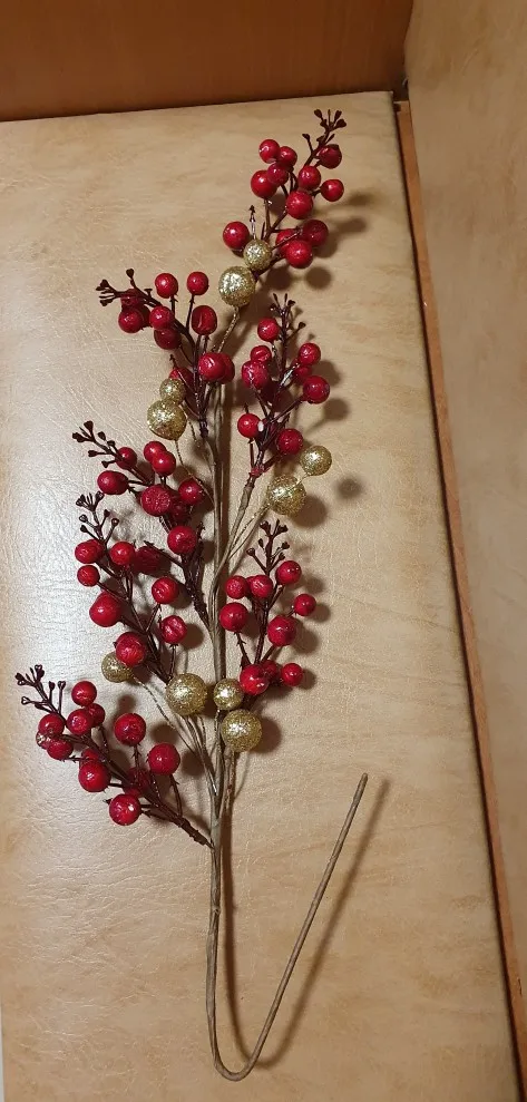 Ветка не очень хорошего качества. Ягодки держатся, как говорится, на "честном слове"... Часть высыпаются из пакета при распаковки, часть помяты, не прокрашены. На картинке продавца смотрится на много лучше чем в жизни. Повторно я бы её не покупала.