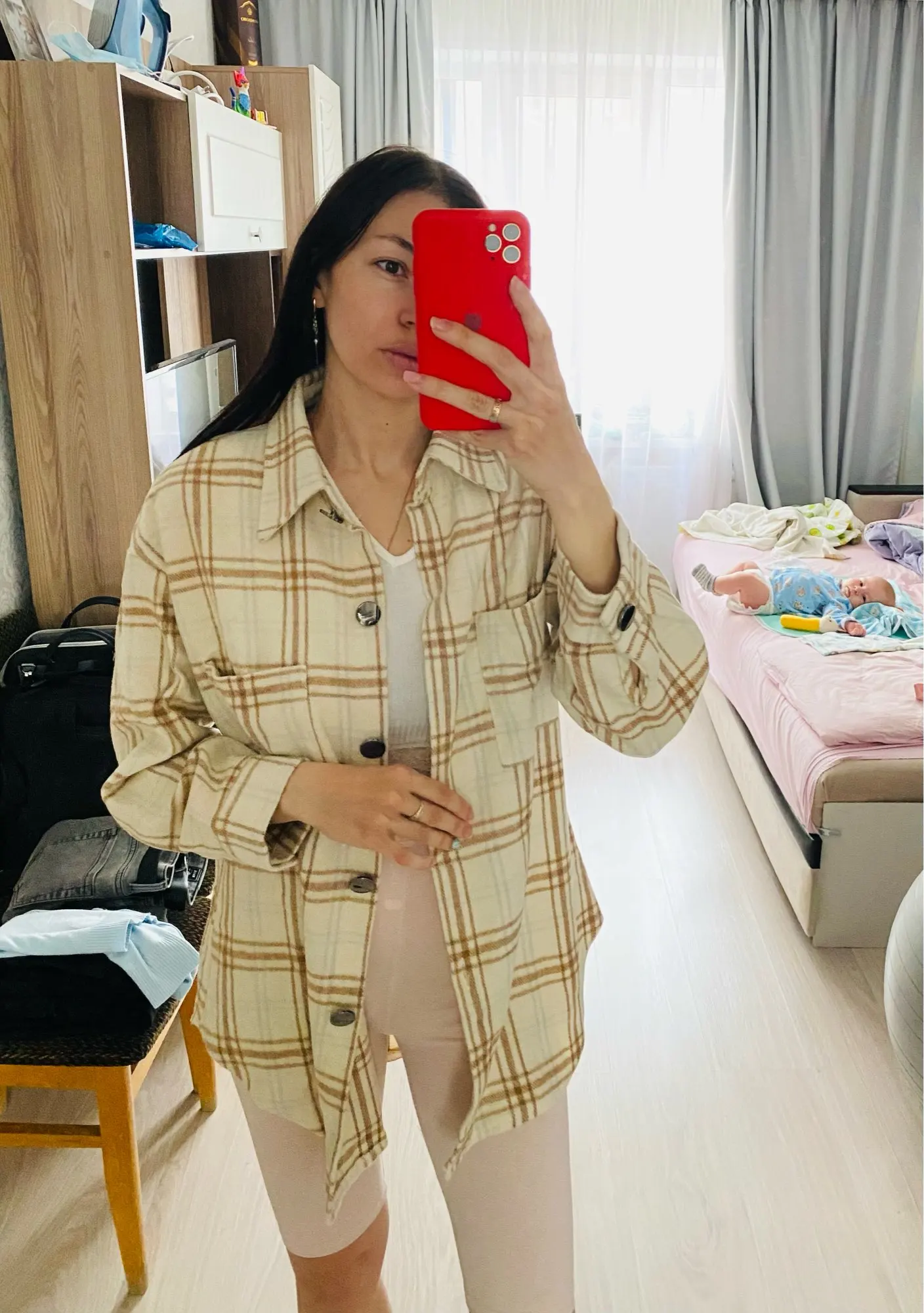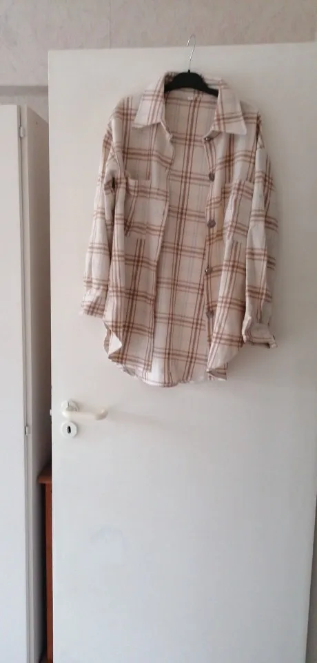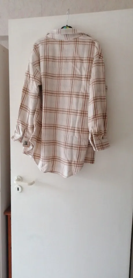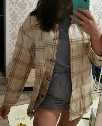 Рубашка мягкая, тёплая. Фурнитура хорошо сделана. Пуговки блестят, не знаю как конечно в носке будут, может быть и облезут, но пока красивые. Хотела, чтобы был оверсайз, конечно лишканула с размером, выбрала L, нужно было лучше М. Параметры 170, 99-80-102 Мка была бы супер, но и так не плохо. Рукава широкие, пуговицу придётся перешивать. Доставка быстрая.