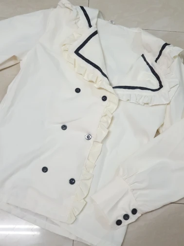 Рубашки женские весенне-осенние элегантные с оборками и матросским воротником повседневные блузки женские милые корейские стильные женские топы в стиле Харадзюку