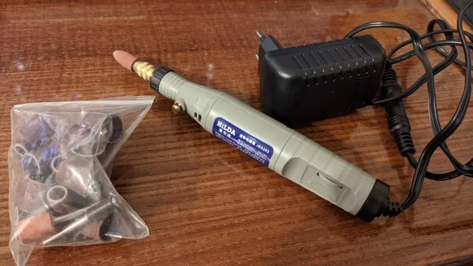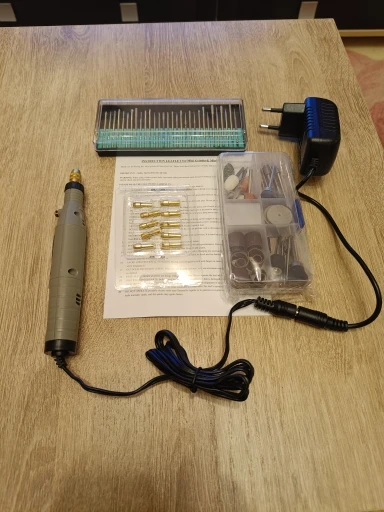 Маленькая, удобная, мягкий шнур. По размерам как аккумуляторная TungFull, но значительно мощнее. Биения не наблюдается, ставил сверло 1мм, нормально. После 10 минут работы с 30мм насадкой на полной мощности слегка теплая, блок питания холодный. Покупкой доволен.