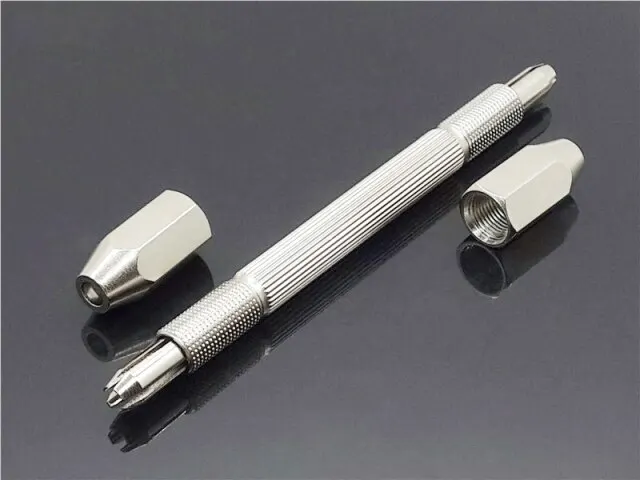 норм. сверлить нужно поворачивая пальцами среднюю часть мини дрели. 2 вида цанги