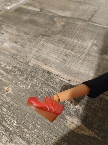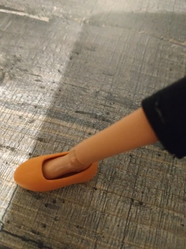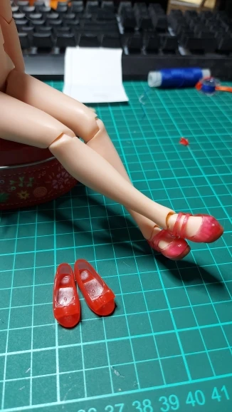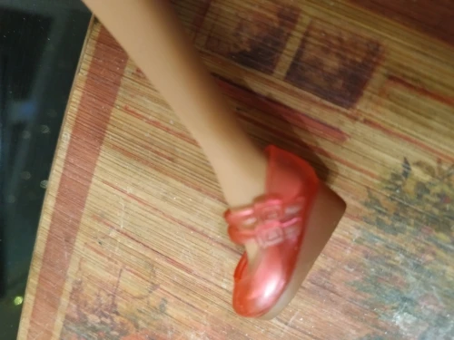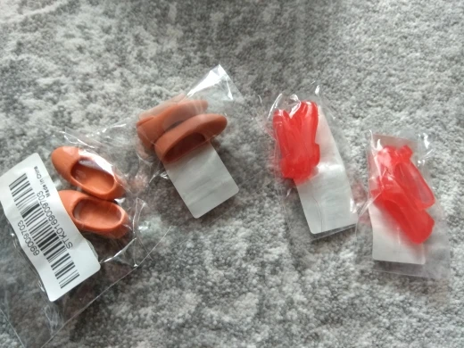 Симпатичные туфельки. Хорошо подходят на ногу Азонки. Правая и левая туфельки разные, отмечены внутри. Сделаны хорошо, судя по всему материал резина. Липкости нет, окрас равномерный.