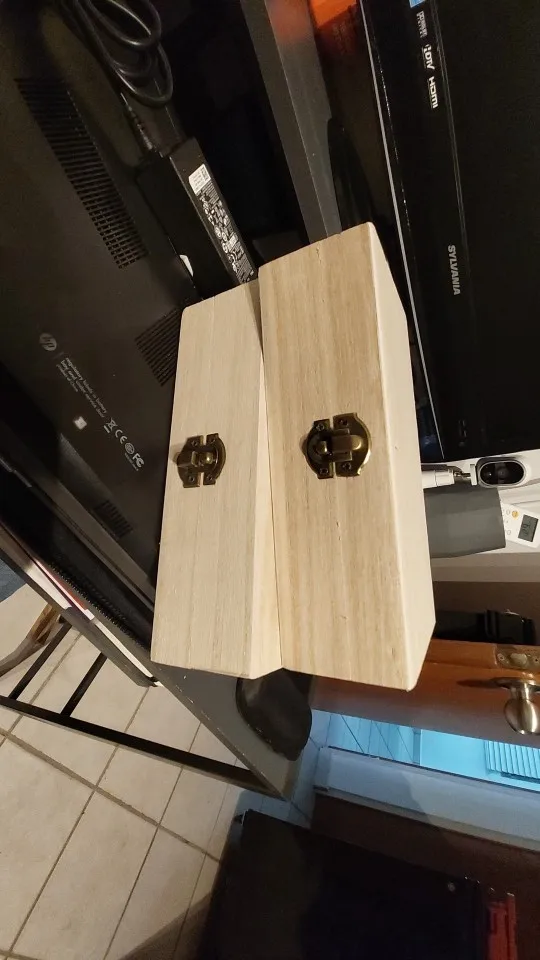 Упаковка очень слабая-просто пакет,а коробочка довольно хрупкая т.к. из дерева.Не полностью были завёрнуты шурупы,крепящие петли,это,конечно,не страшно-завернул сам.Но сами петли сильно болтаются из-за этого имеем то,что видно на фото.Смотрите сами,как на мой взгляд,можно было и получше петли поставить.О мелких огрехах молчу.На картинке выглядело гораздо красивее.