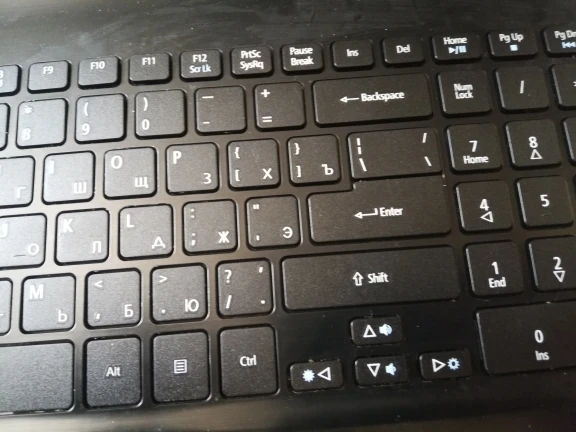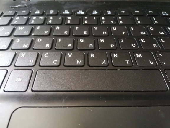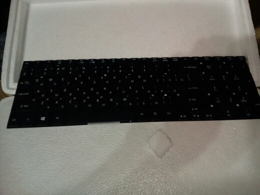 Эта третья клавиатура к E5-571G, купленная на алиэкспресс. Ничем не отличается от оригинальной, две предыдущих-отличались механизмами кнопок, шрифтами, шлейфом. Единственный брак- чуть смазанная печать шлейфа, там где он вставляется в плату ( исправил с помощью иглы).